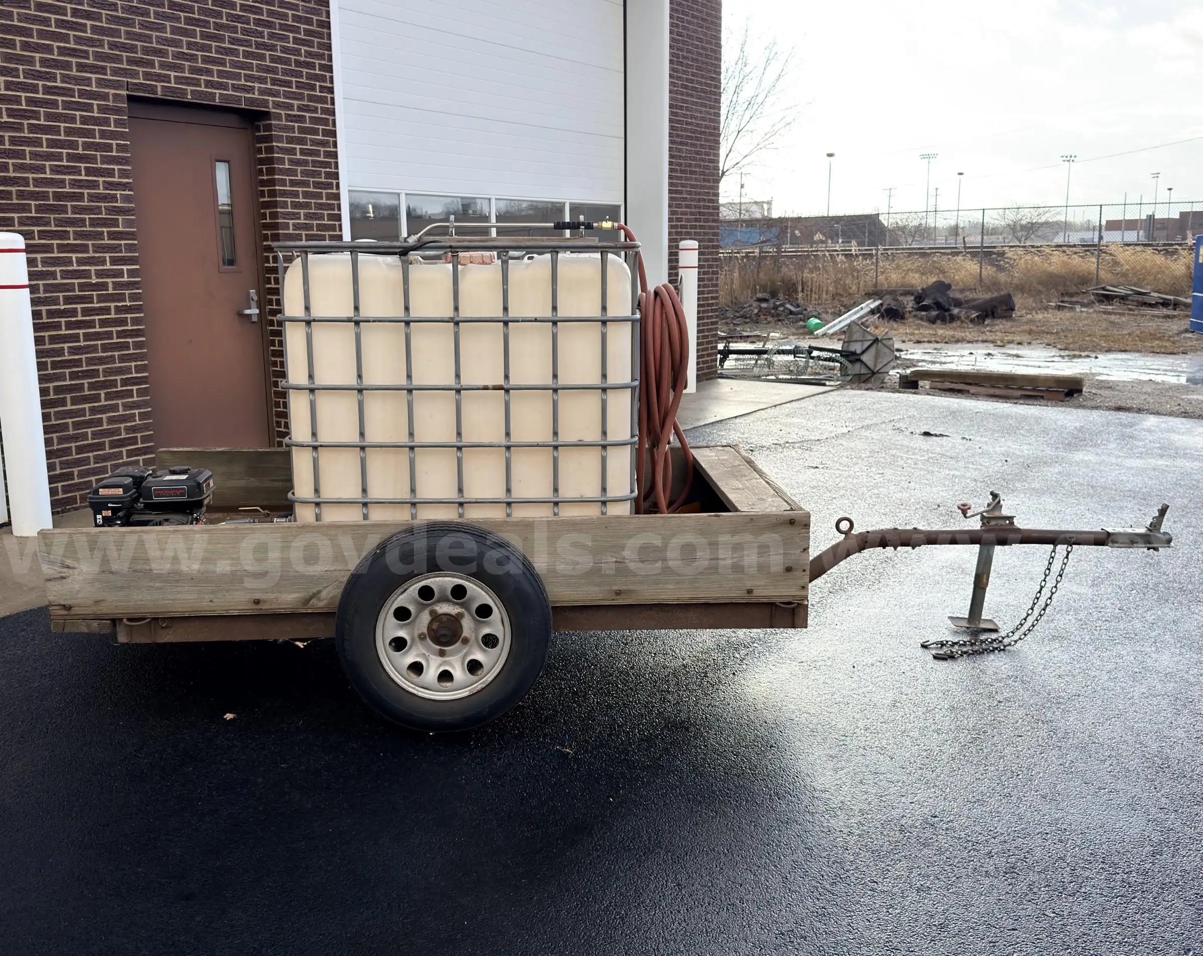 Item:Homemade watering trailer with 300-gallon water tank with 5hp motor