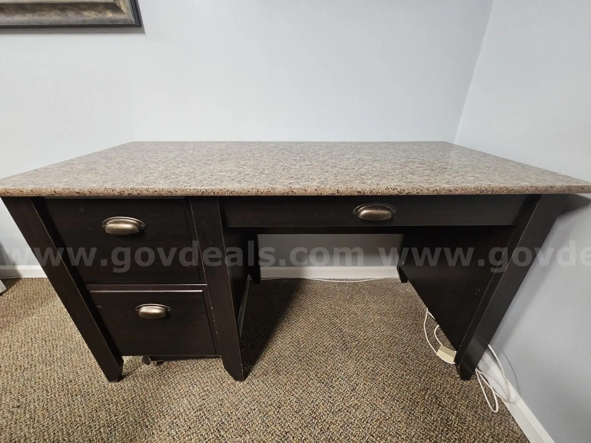 Item:Brown Desk with Marbled Color Top