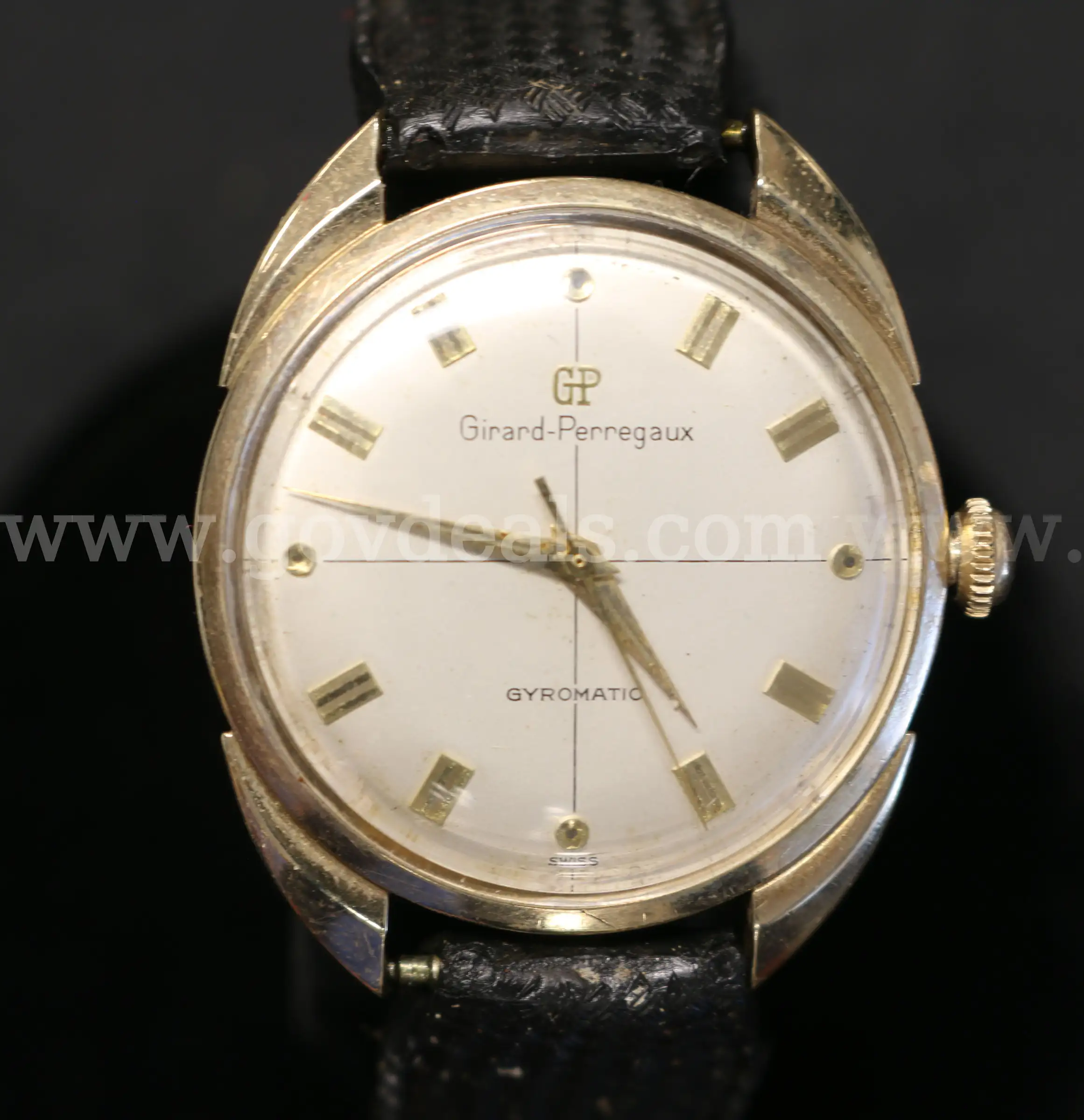 Item:Vintage Men s Girard-Perregaux Gyromatic Gold-Filled Wristwatch with Case