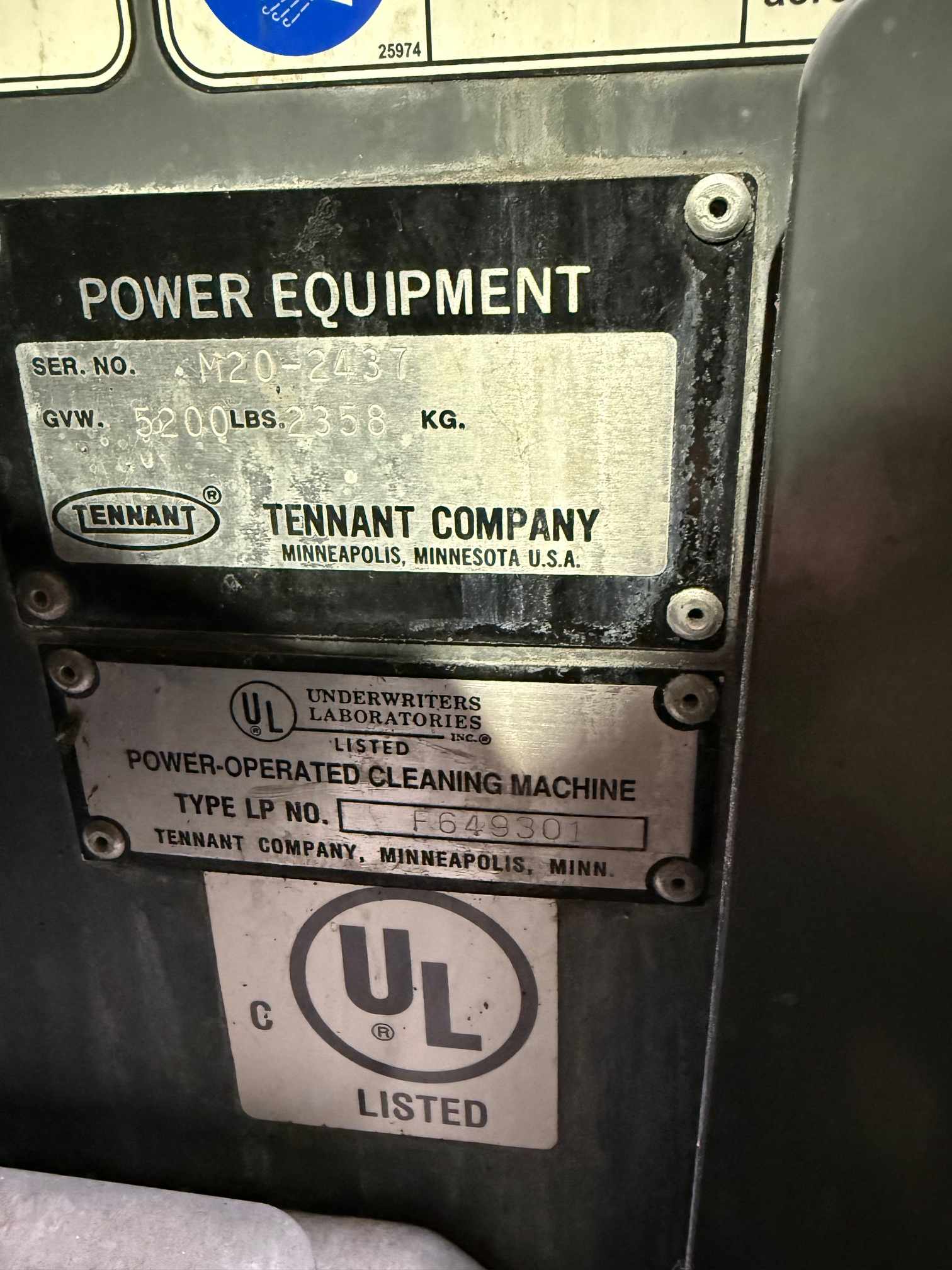 Item:Tennant Co. Indoor Floor Scrubber M20-2437 #65174