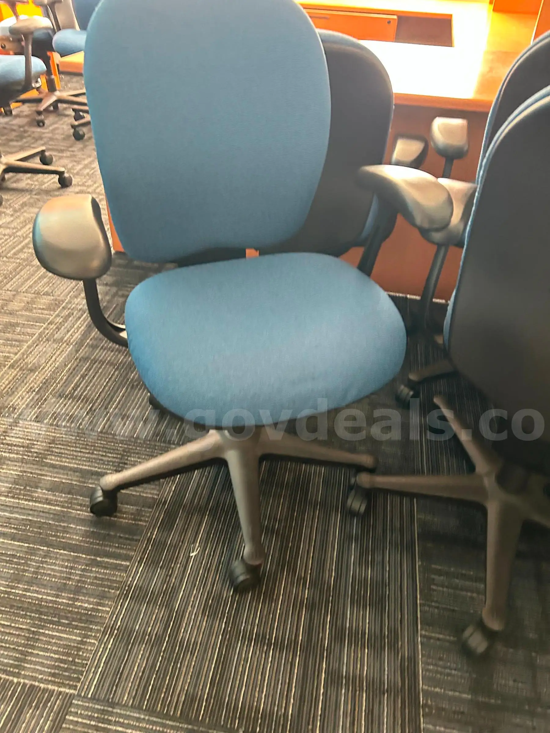 Item:One lot of (30) blue cloth chairs with wheels