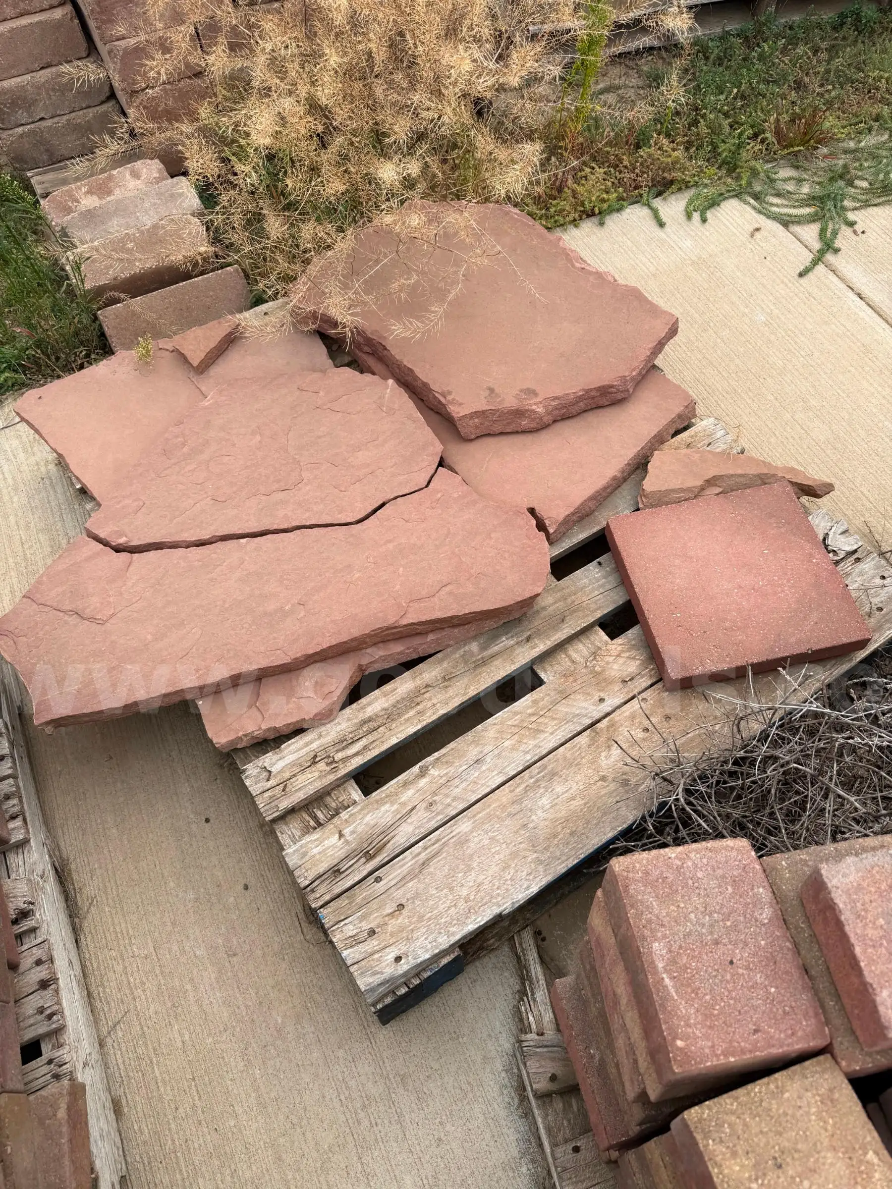 Item:Red Rock - Mixed size color red used pallet of approx 6 individual units (lot#61)
