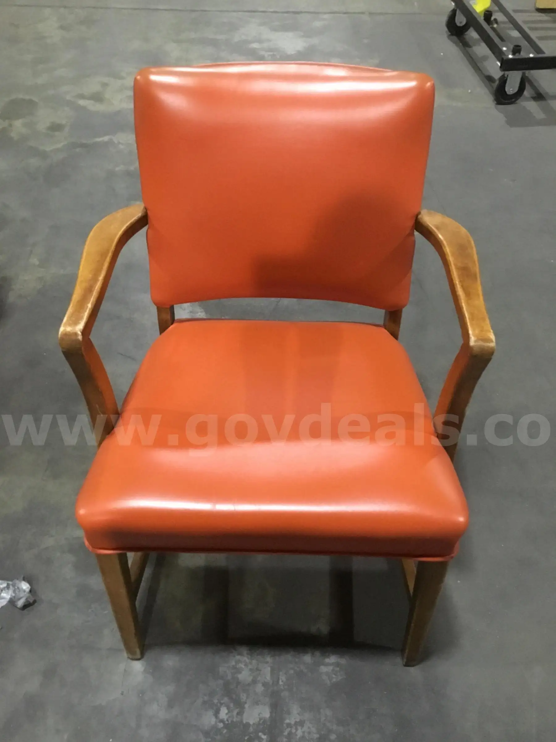 Item:Orange leather chair brown hardwood armrests “DH”