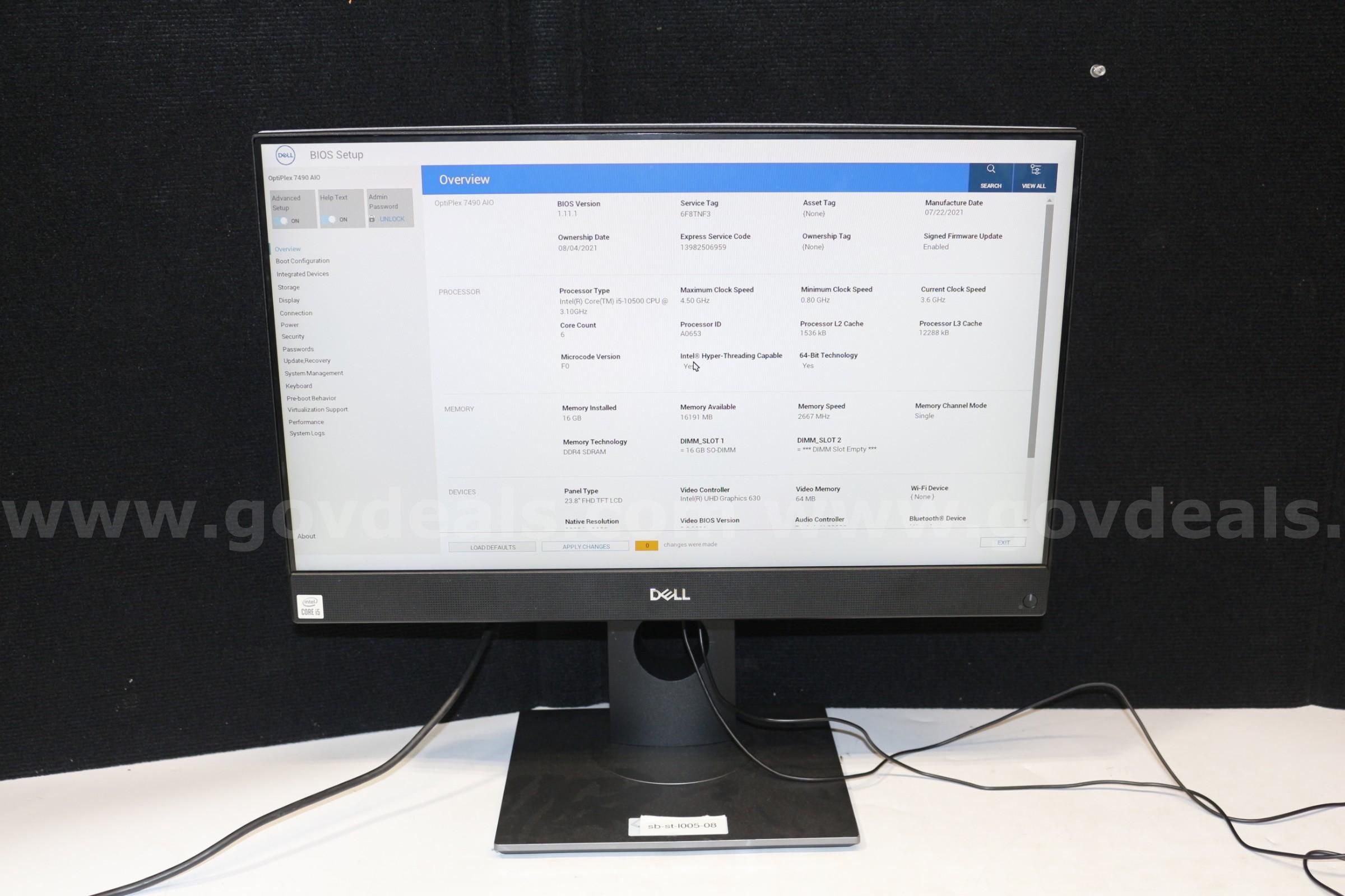Item:(1) Dell OptiPlex 7490 AIO Memory 16GB HDD SDD 512GB core i5-10500