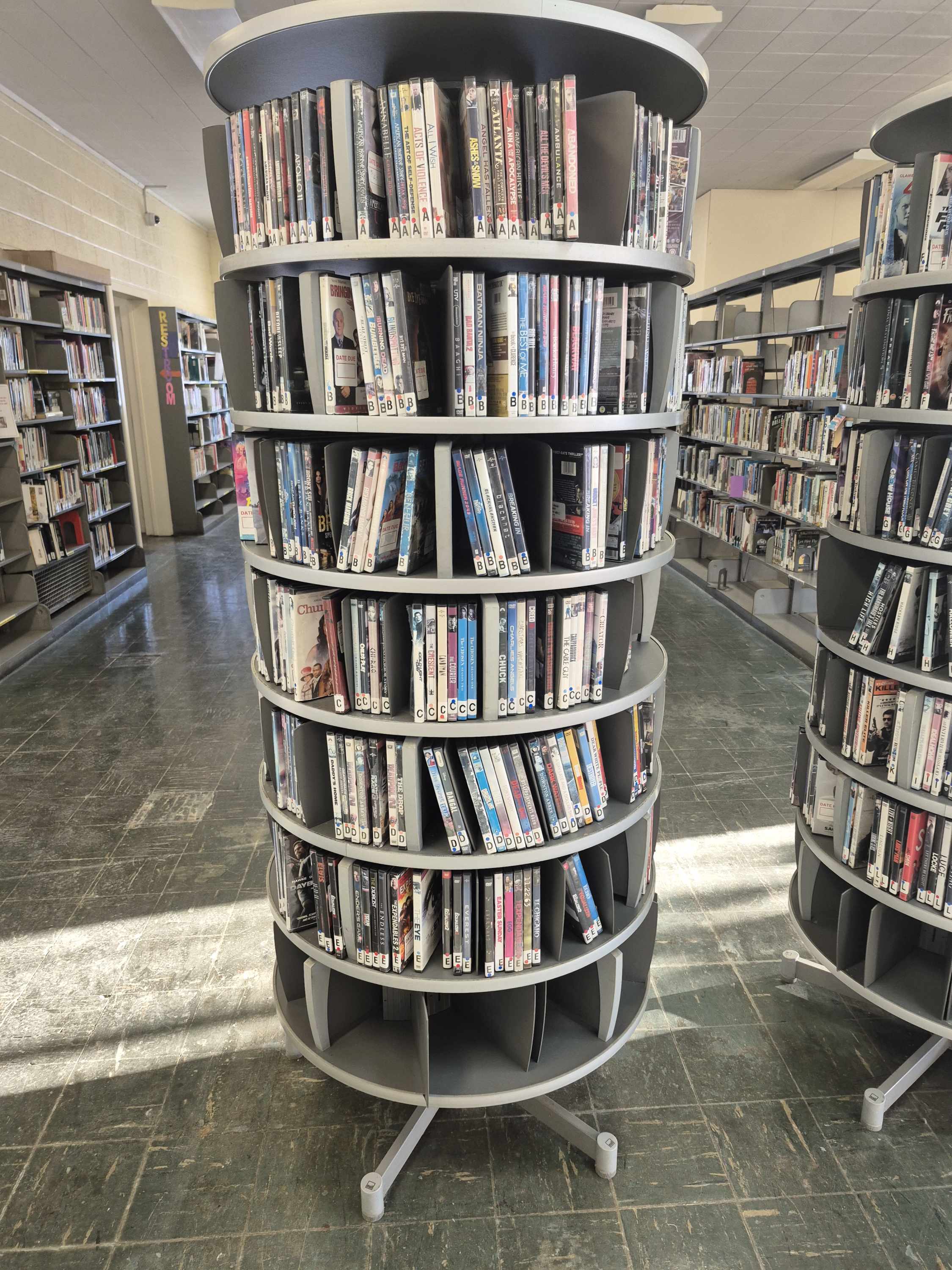 Description:For sale by Detroit Public Library. Starting bid is only $1.00 for this item: Rotating DVD Shelves (1 of 4)