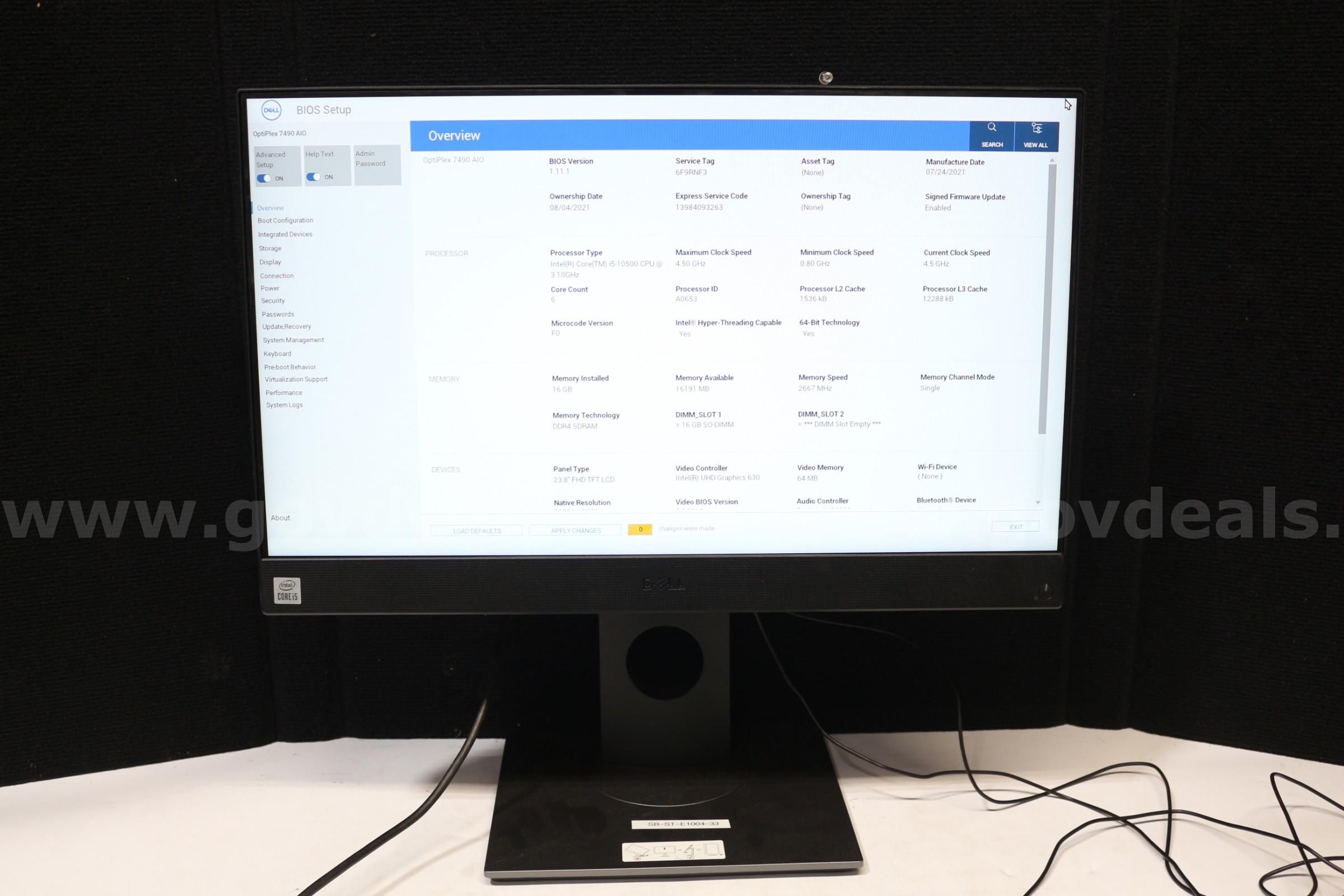 Item:(1) Dell OptiPlex 7490 AIO Memory 16GB HDD SDD 512GB core i5-10500
