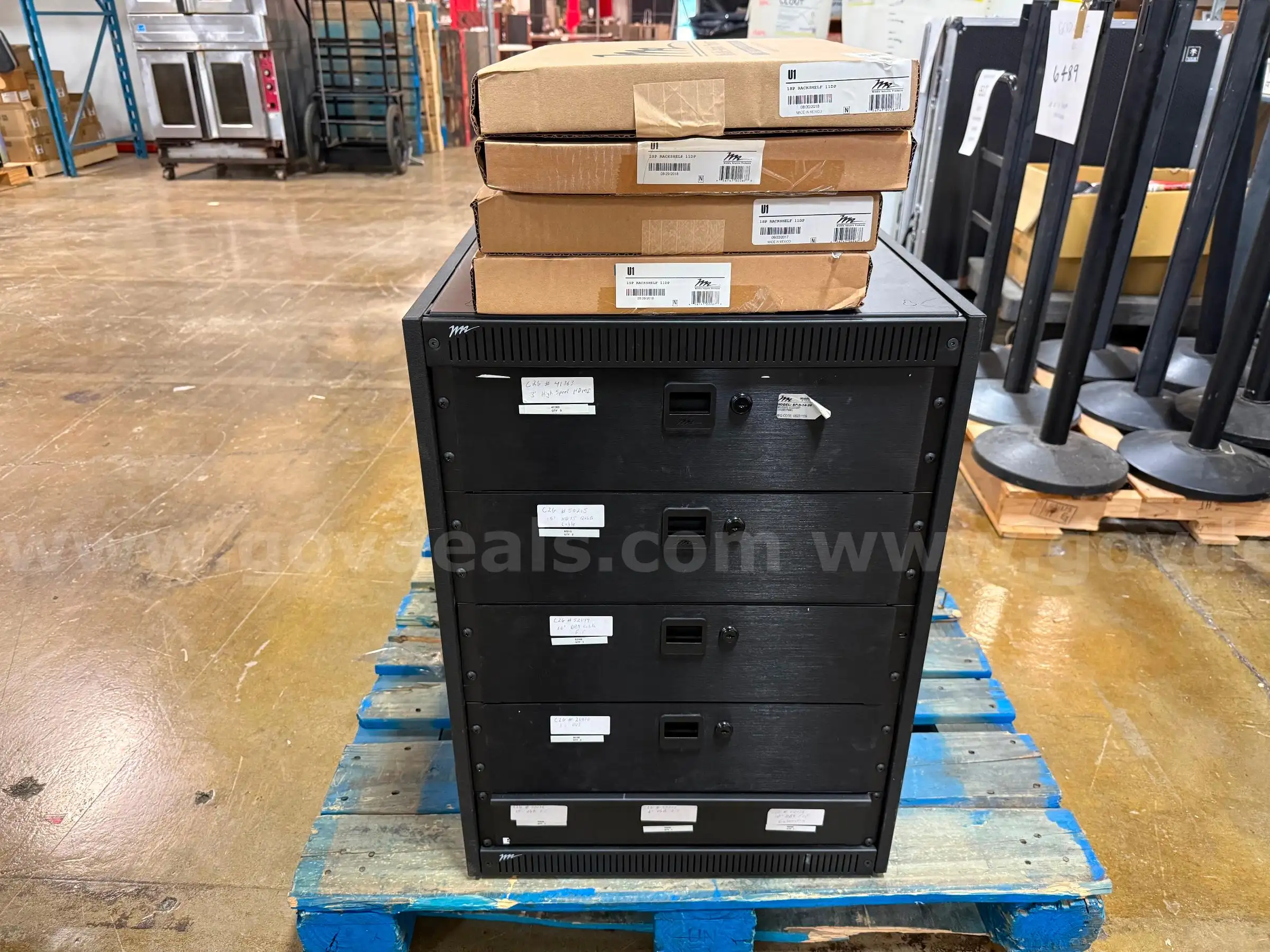 Item:Middle Atlantic Products Rack with 5-Drawers and 4 New U1 Rack Shelves