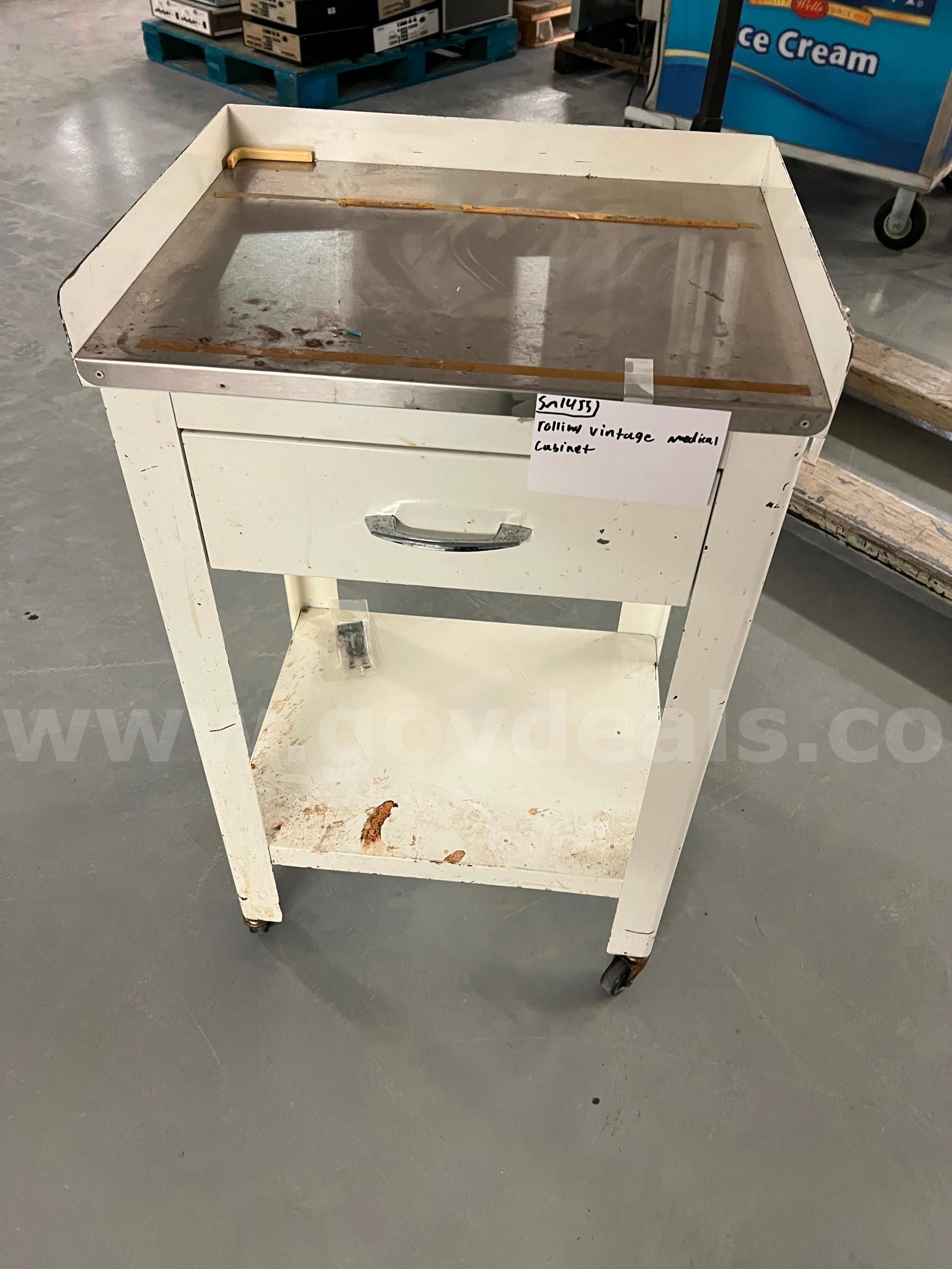 Item:Rolling Vintage Medical Cabinet