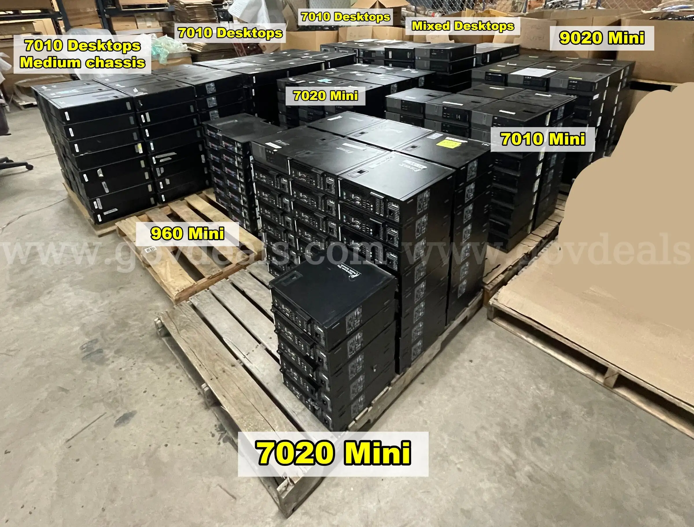 Item:Dell desktop PCs Multiple pallets of desktop PC s retired from a school district. POWERED ON. HARD D