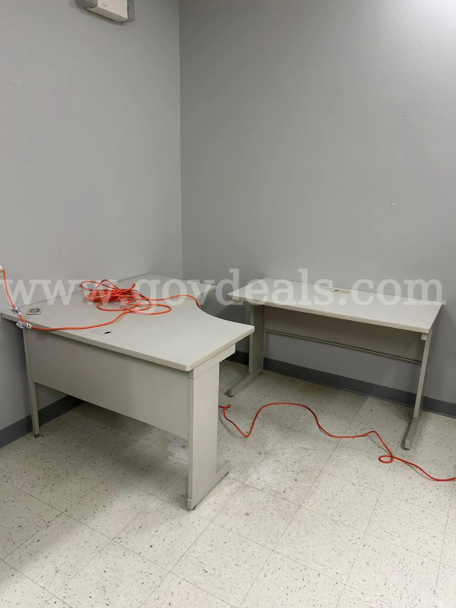 Item:1 medium sized white desk and 1 small white table