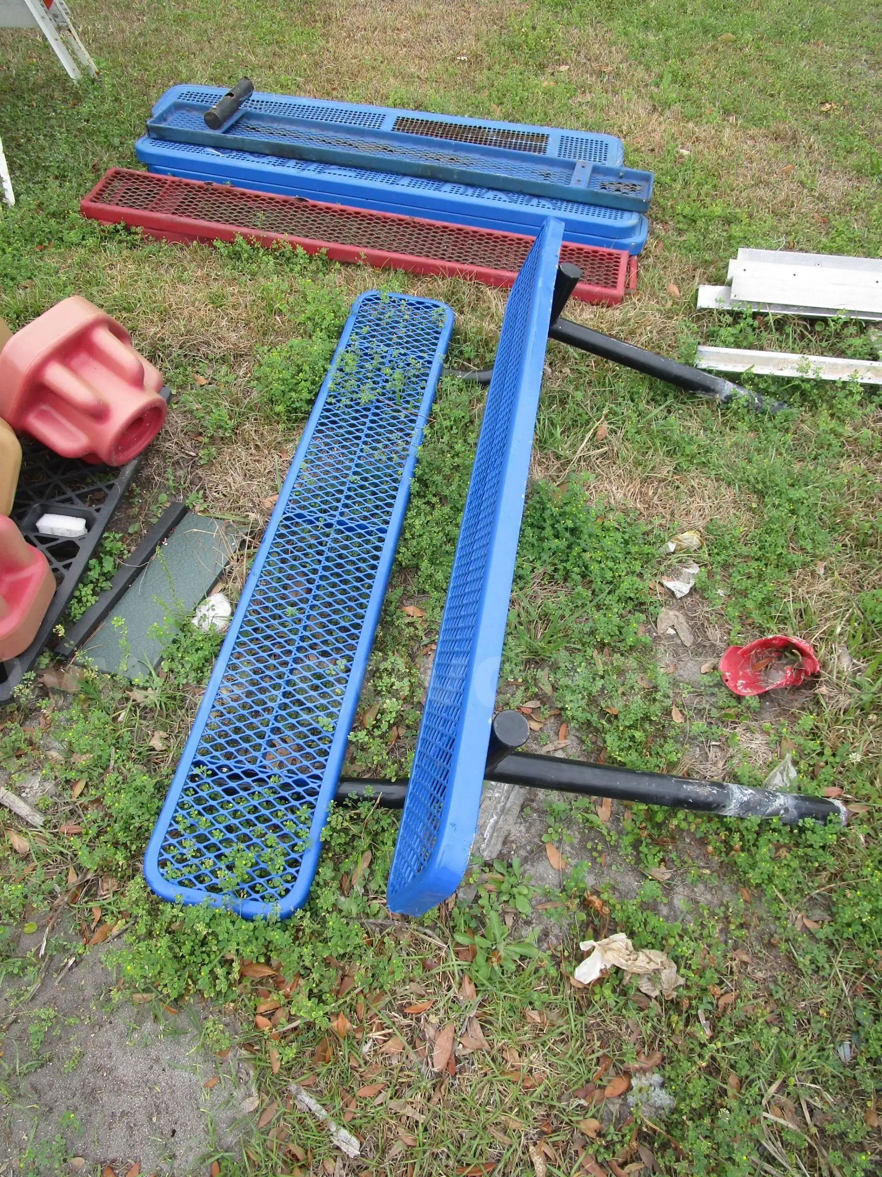 Item:(1) USED METAL PARK BENCH (7) USED METAL BENCH SEATS