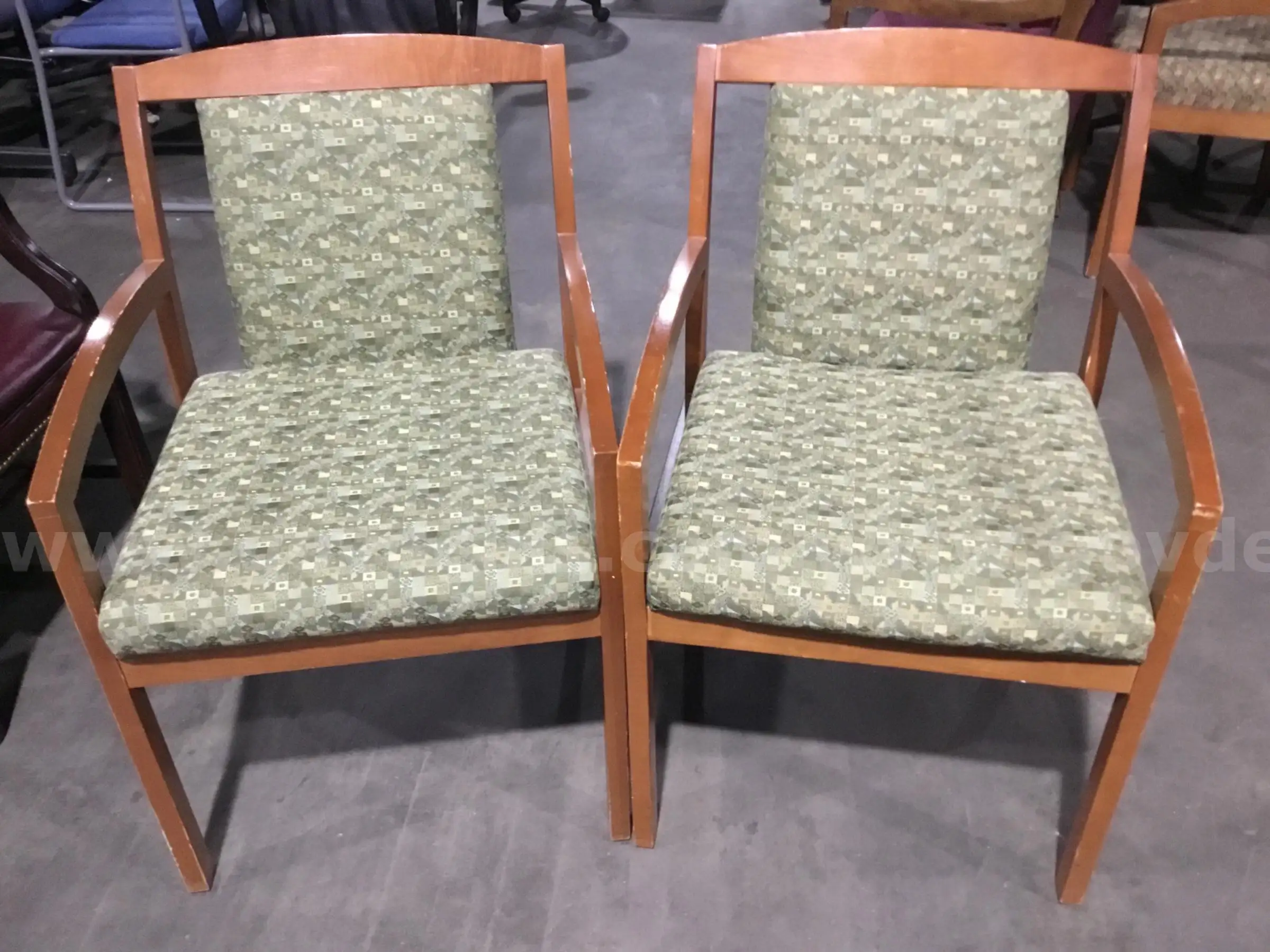 Item:Two Standard Wooden Chairs w olive green seating “C”