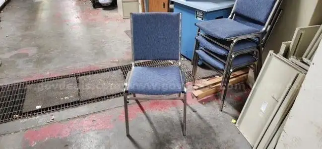 Item:Chairs - Lot of 4 Stackable - Chrome base w Blue Cloth Seat Back