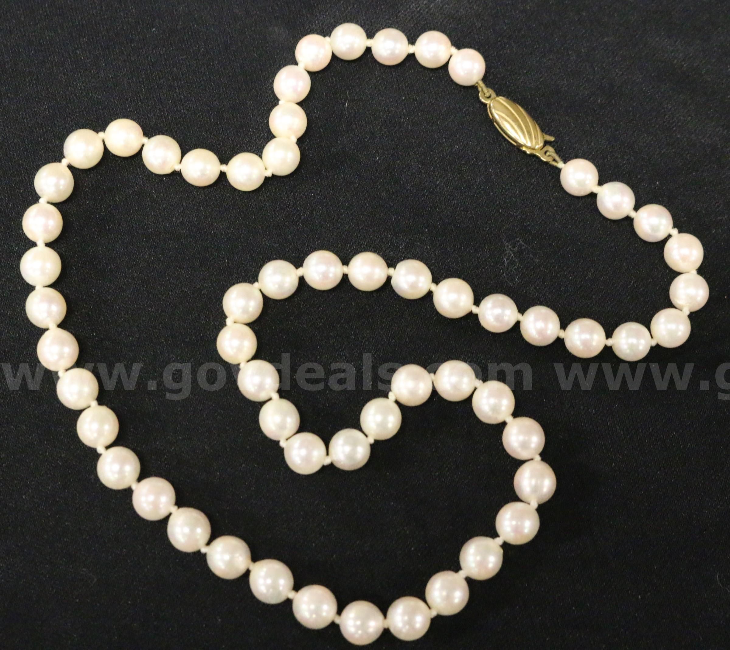 Item:Freshwater White Cultured Pearl Necklace with 9k Yellow Gold Clasp