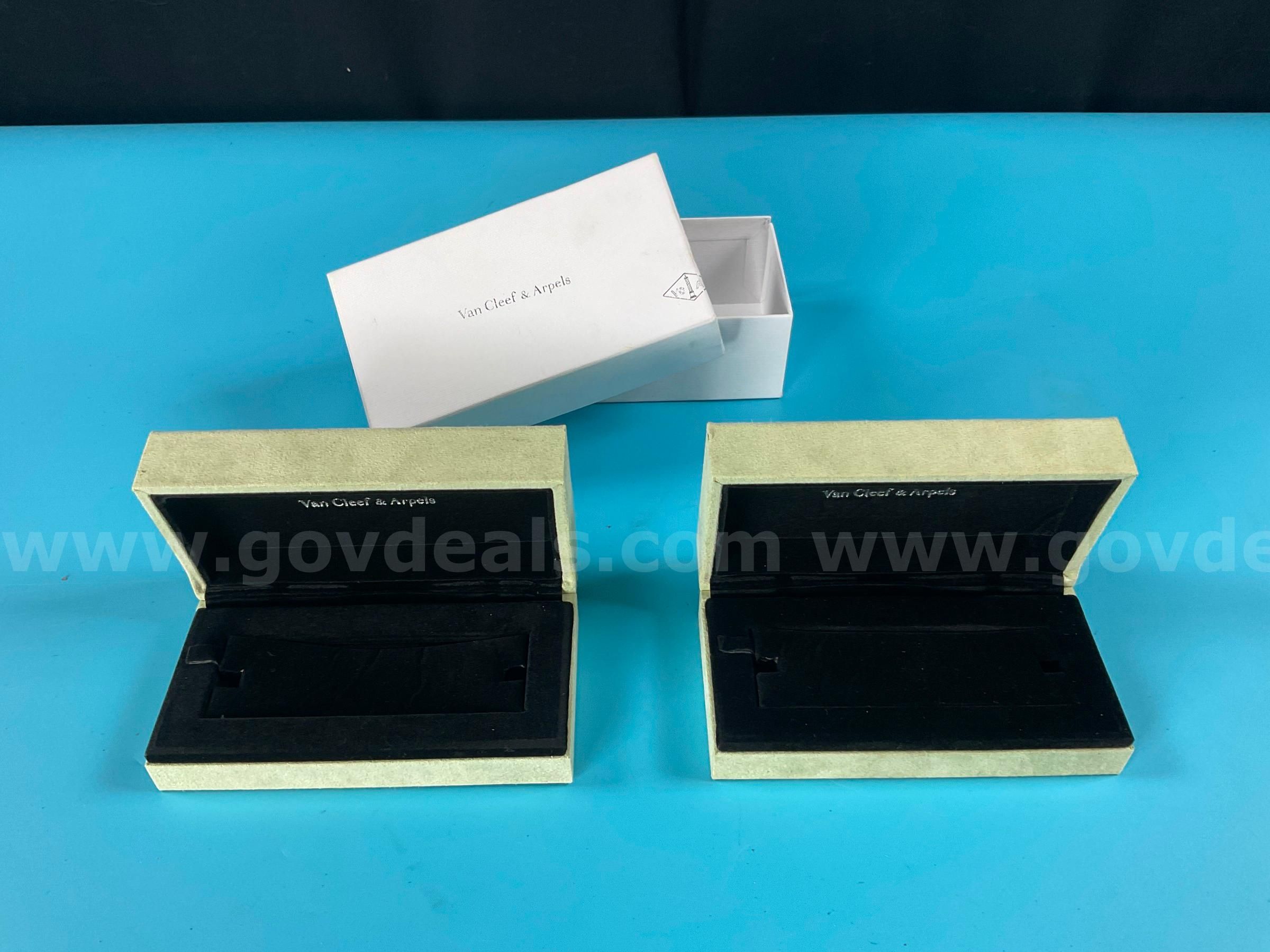 Item:2 - Fashion Bracelet Cases Labeled Van Cleef & Arpels Green Suede 6 x 3 x 3 (1 - with Outer Box)