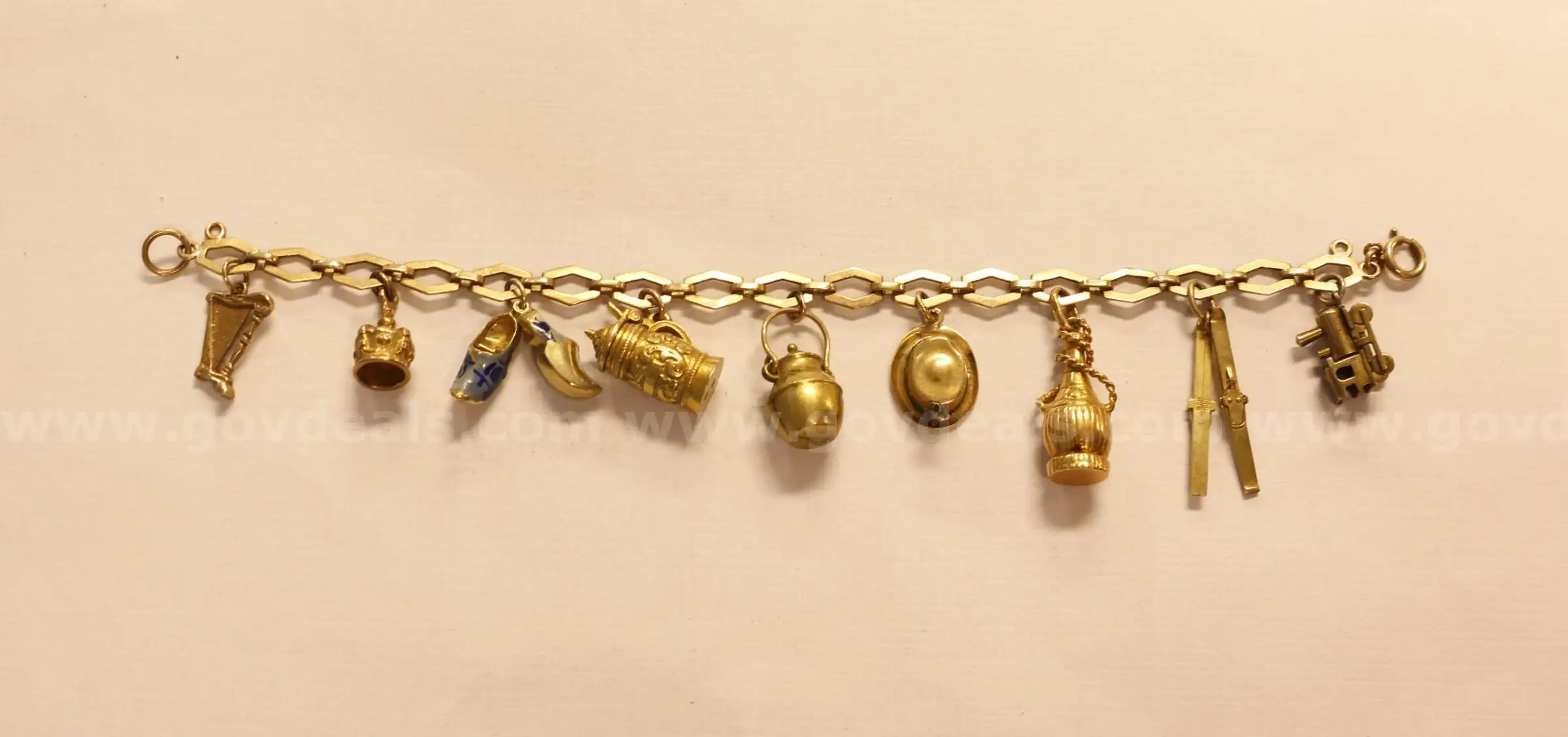 Item:8k Yellow Gold Charm Bracelet with 9 Assorted Karat Charms 22.6 Grams Total
