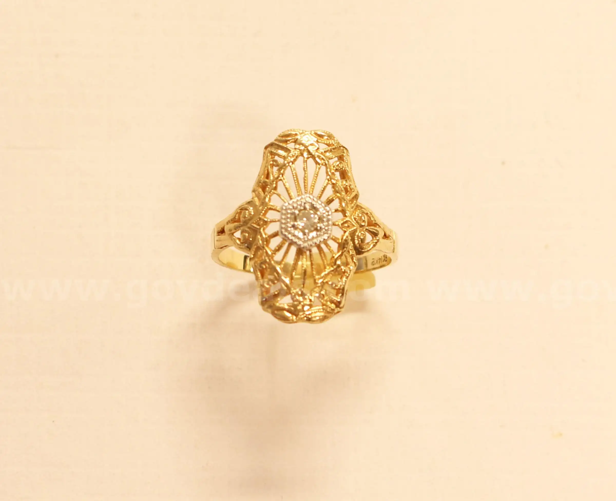 Item:Vintage 14k Yellow Gold Filigree Design Diamond Ring 2.0 Grams