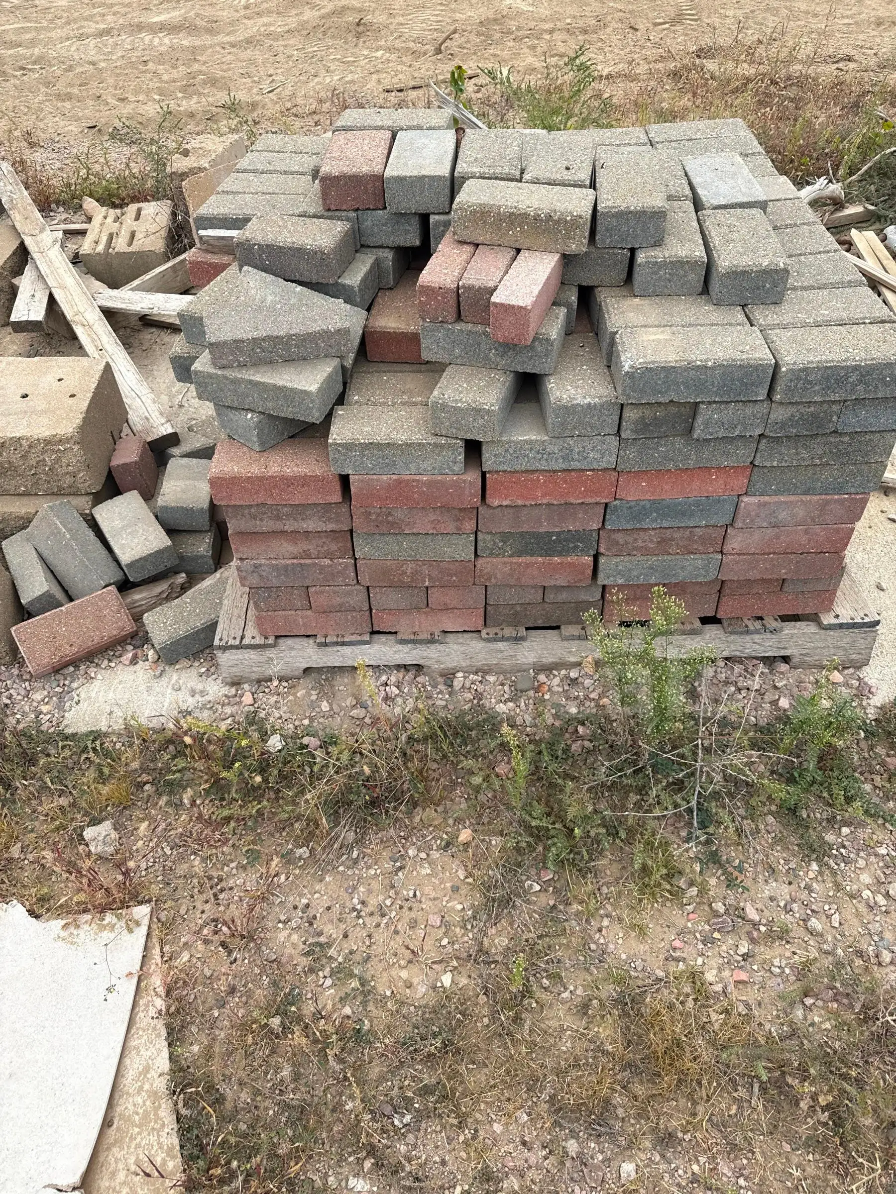 Item:Pavers Bricks - 8x4x2 size colors red and gray used pallet of approx 100 individual units (lot#38)