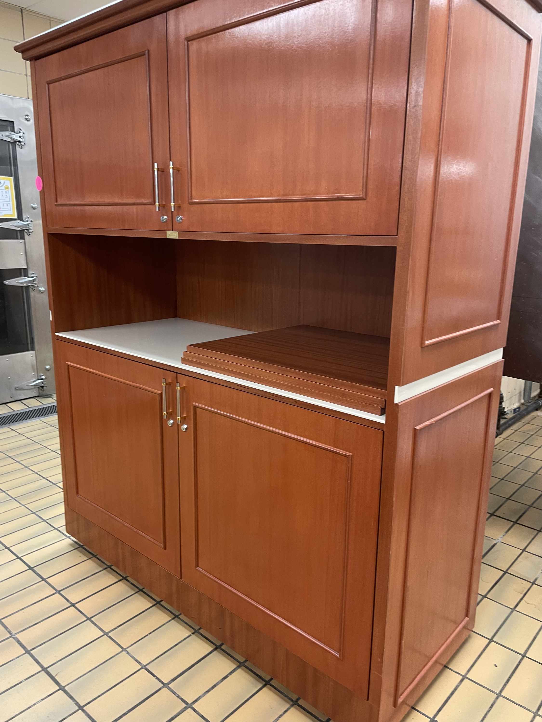 Description:For sale by Oakland Community College . Starting bid is only $200.00 for this item: Kitchen Hutch on wheels