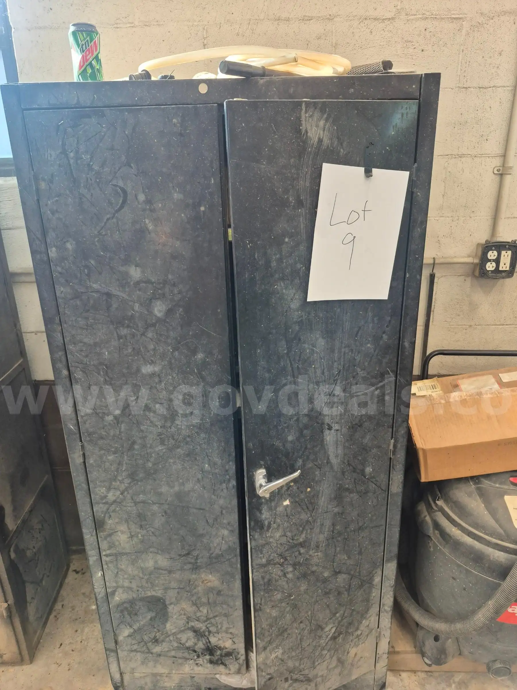 Item:Lot 9 2 Metal Cabinets Shop Vac and Misc.