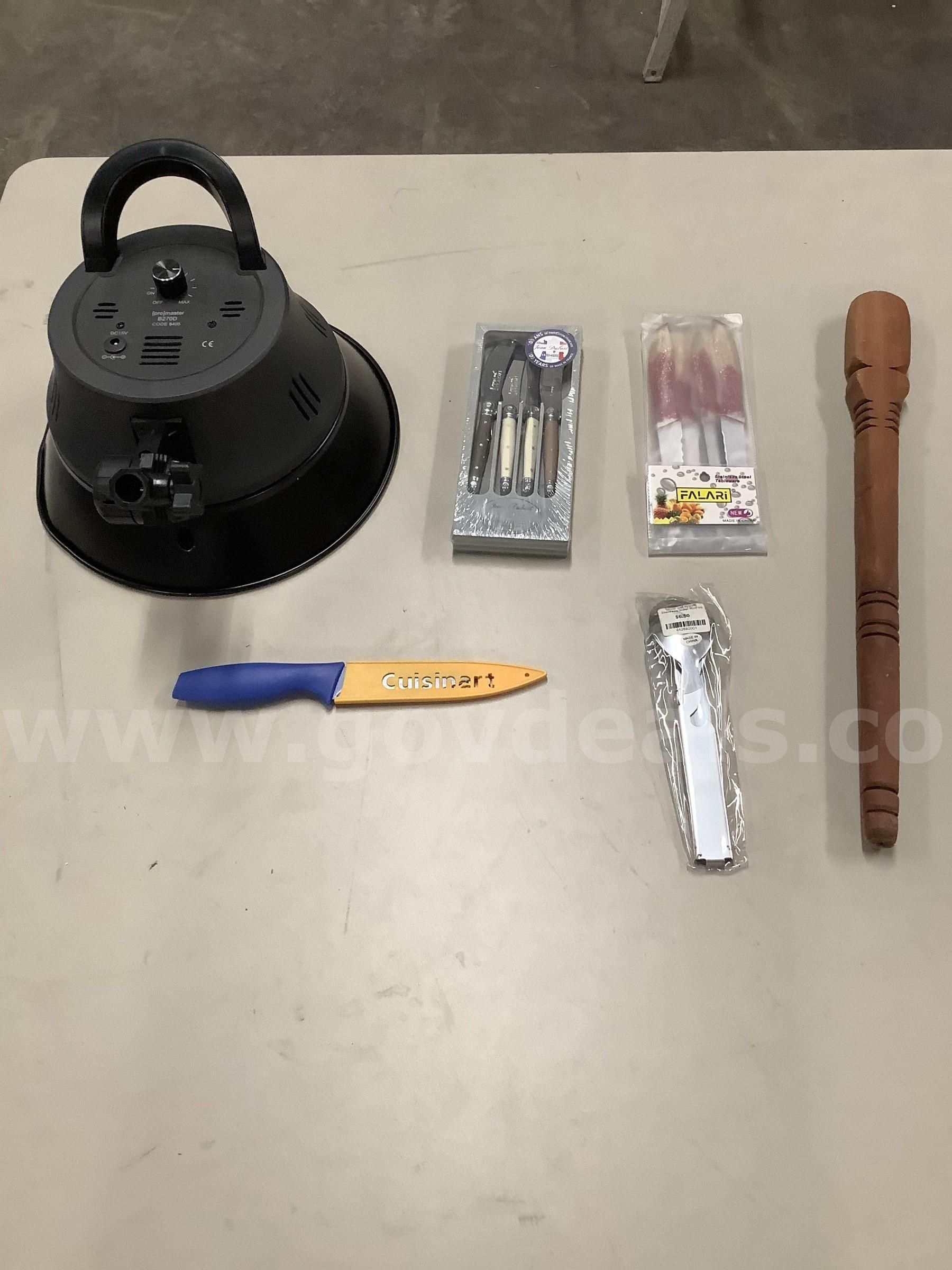 Item:Lot of misc box items-4 Falari knives 4 Laquiole knives promaster cover spoon fork & knife multi kit