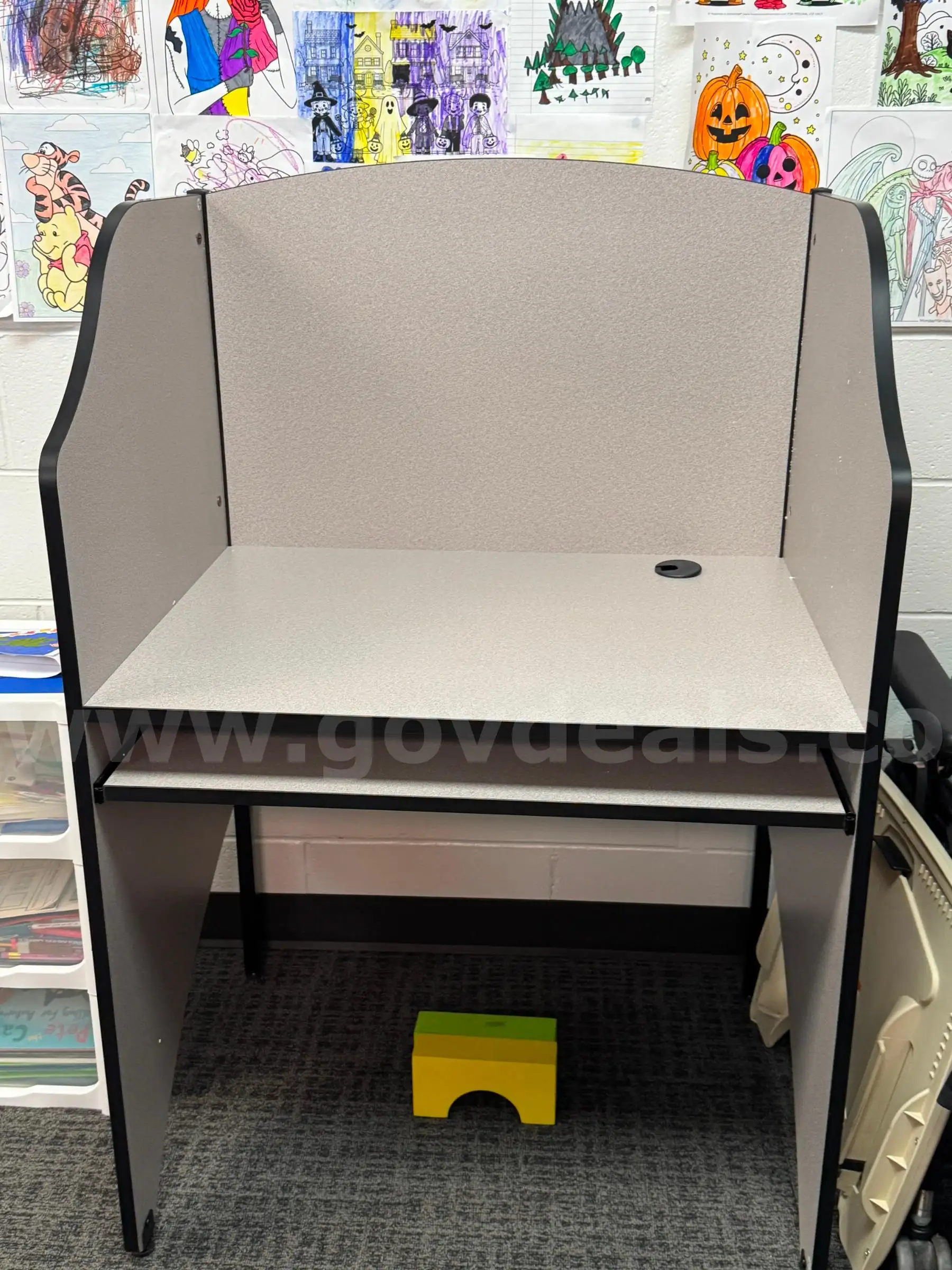 Item:Gray Student Study Carrel 1 Built & 3 in Box
