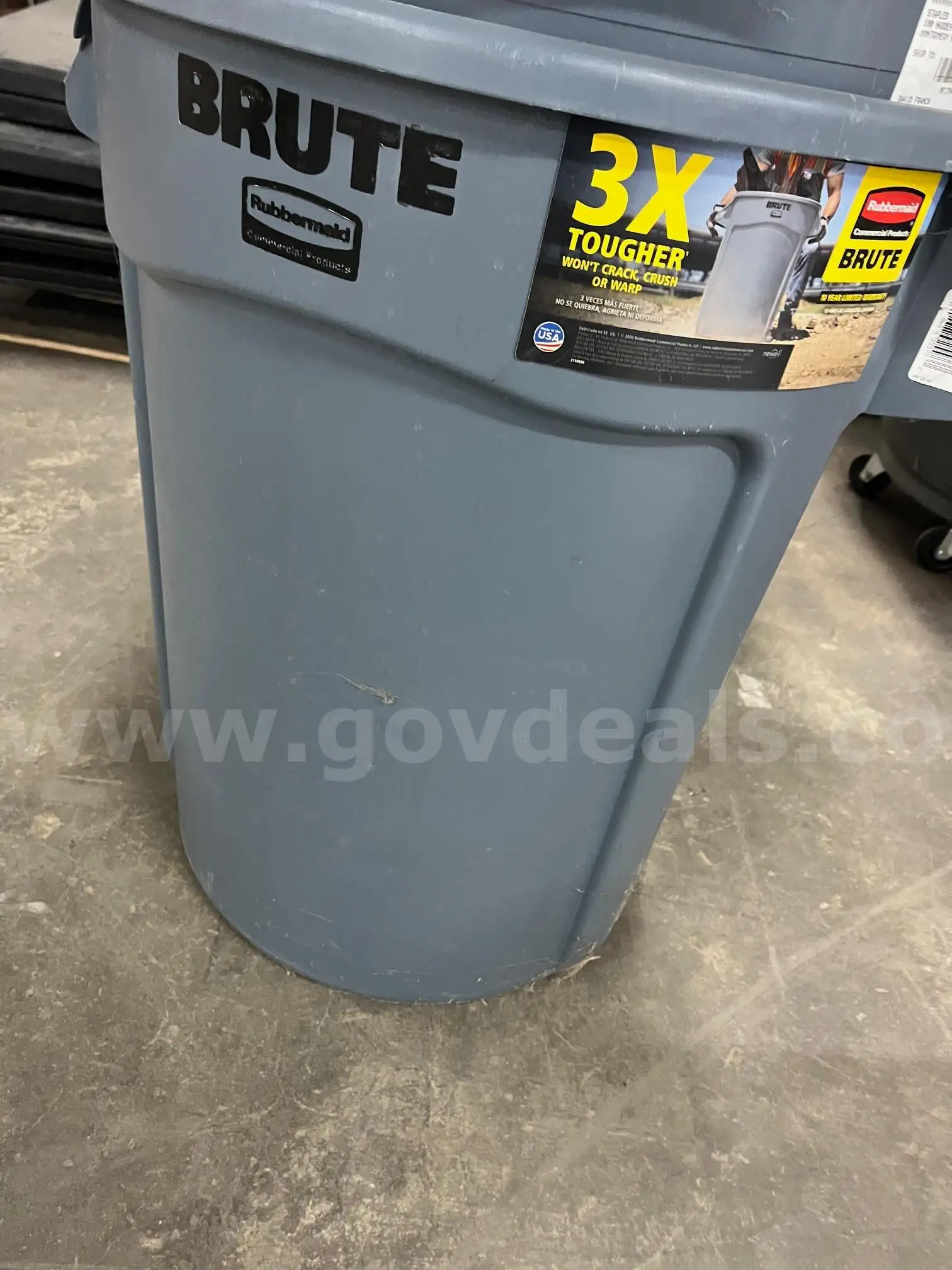 Item:Rubbermaid Brute 44-Gallon Trash Containers Gray | 2 Available Durable heavy-duty trash containers U