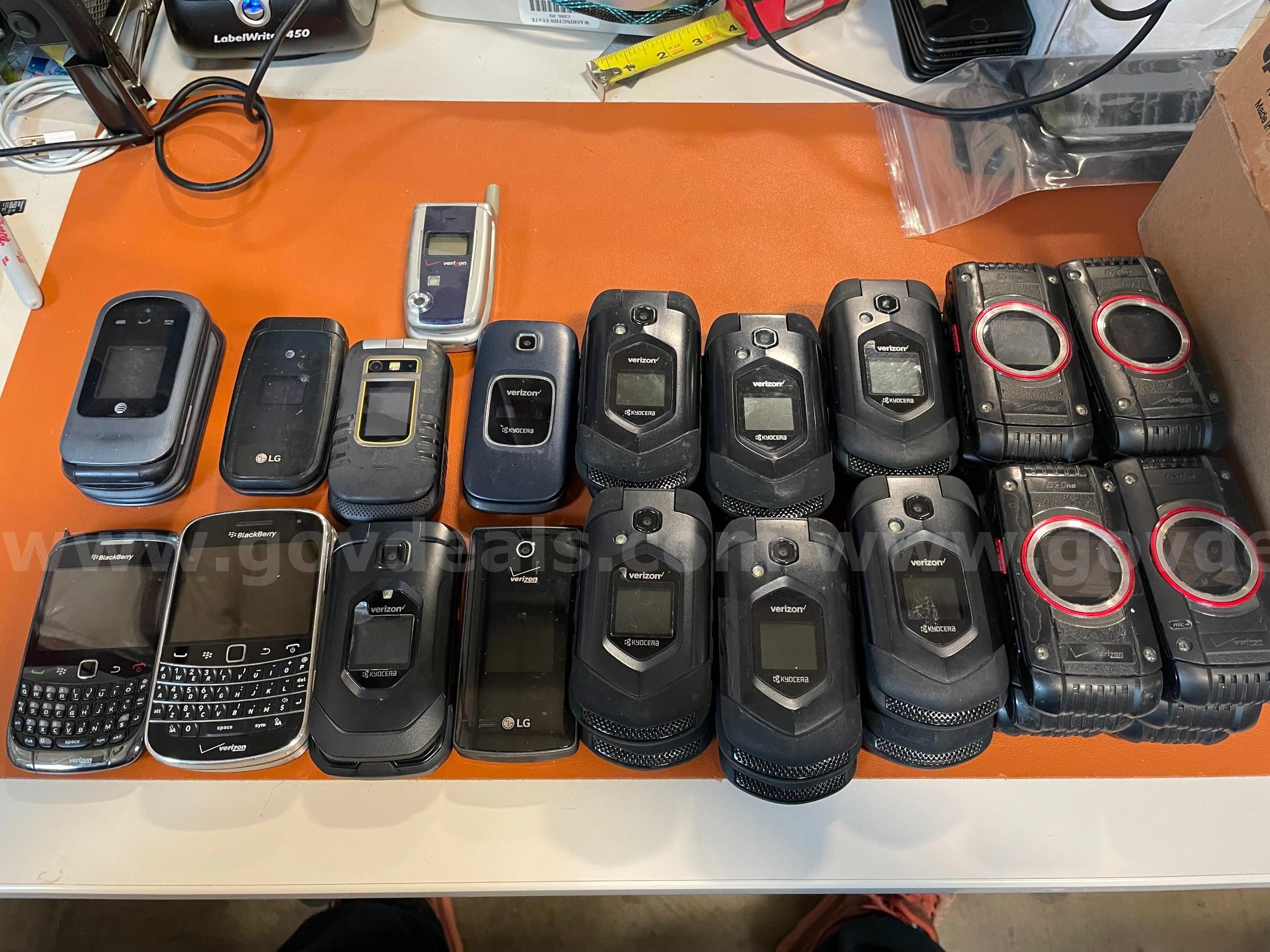Item:Case of ct.32 Cell Phones- Various Flip Phones and Blackberries (ID #44322) (H01-4L) (NoUPC)