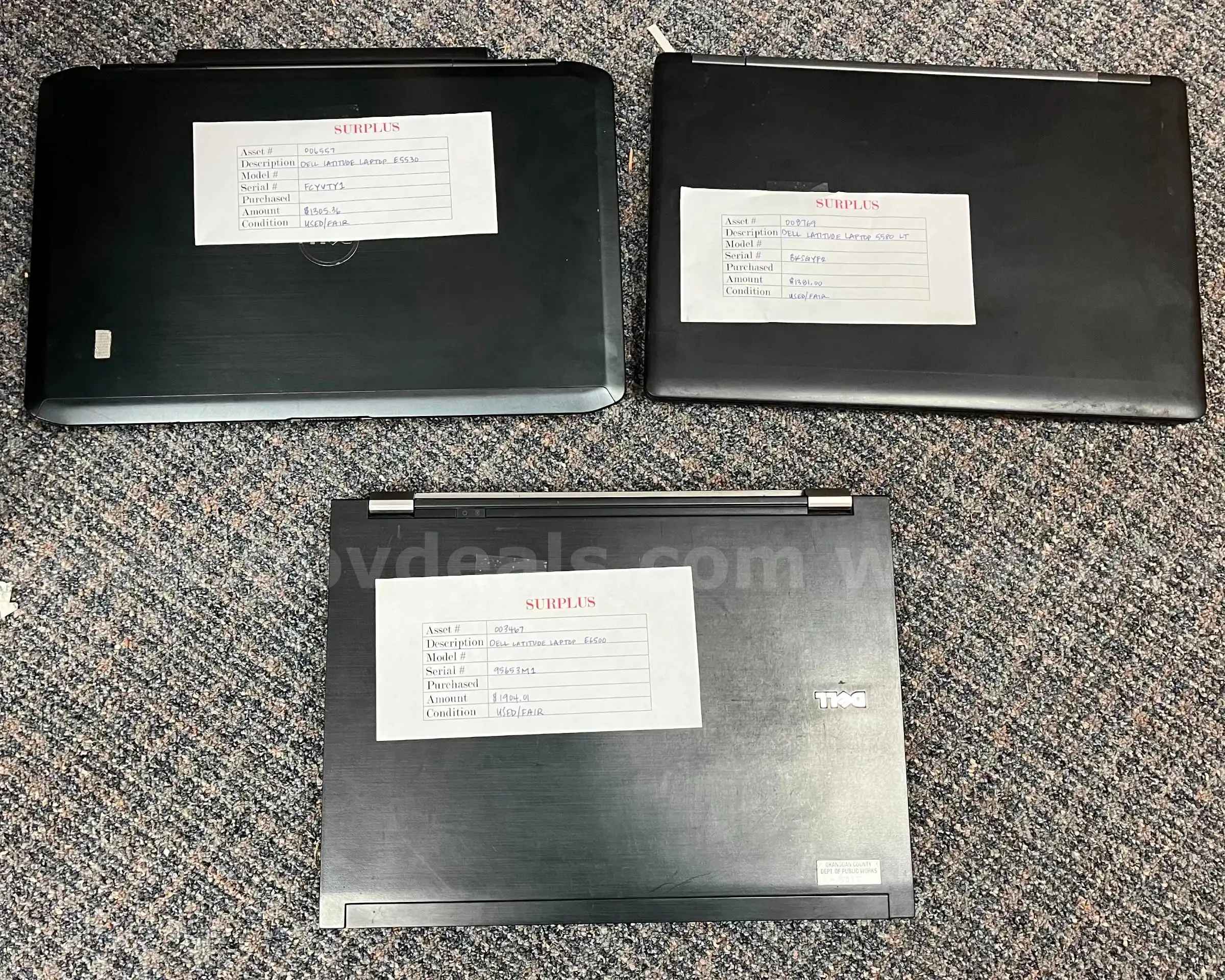 Item:Lot of 3 Dell Laptops