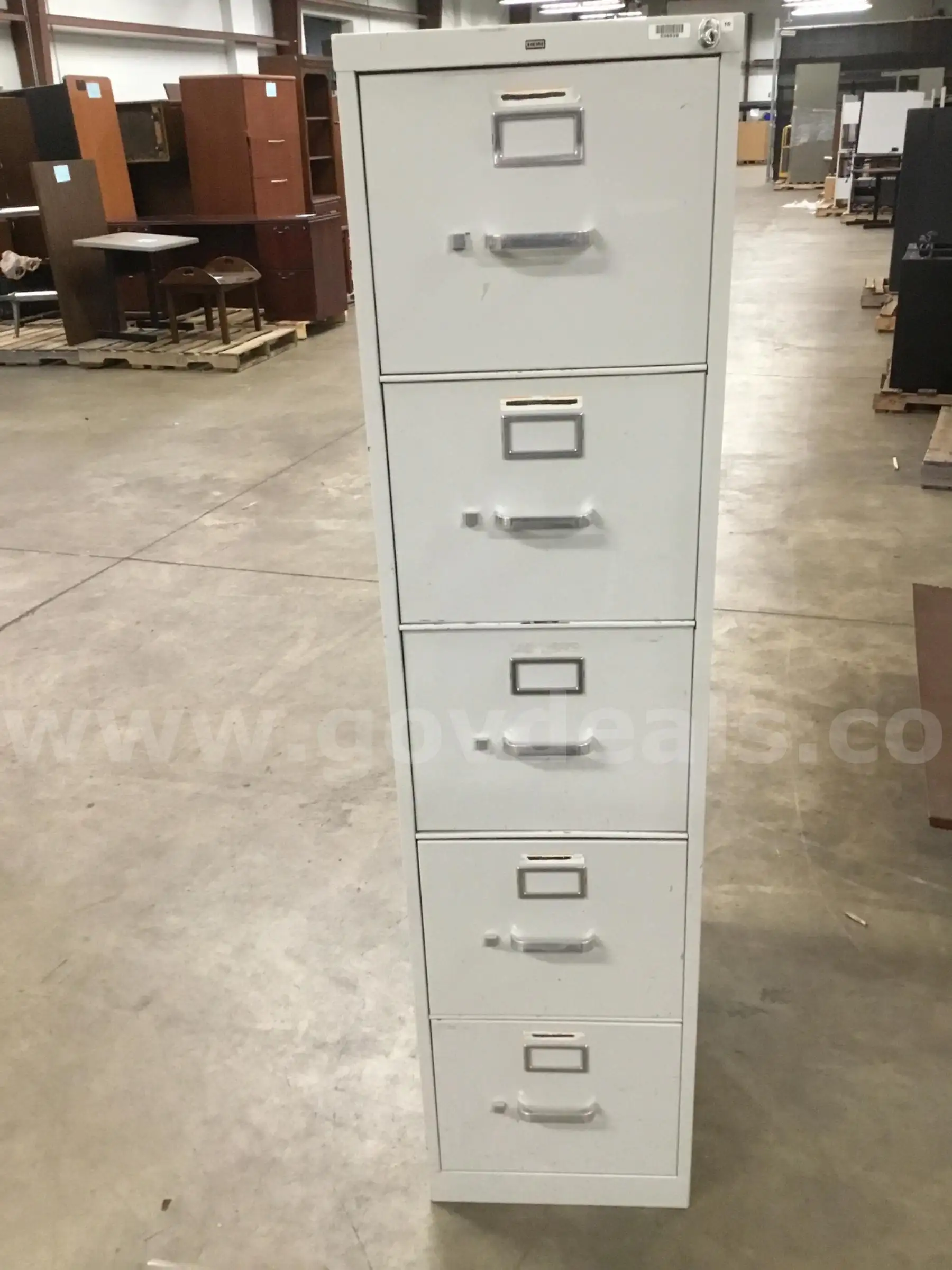 Item:26 1 2 (L) x 15 (W) x 60 (H) light gray five drawer metal filing cabinets (COMES WITH TWO KEYS) “DH”