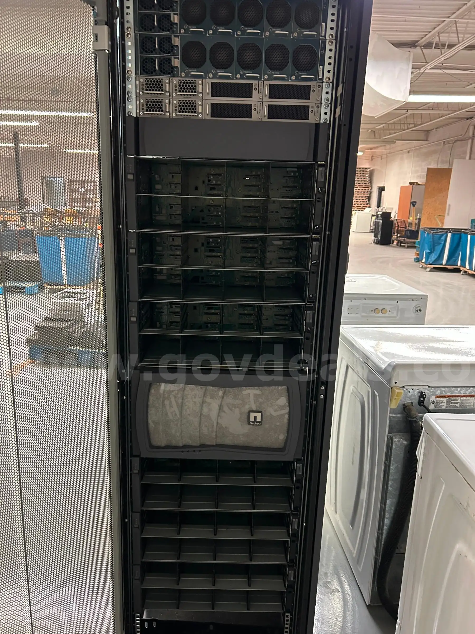 Item:server rack and asstd rails. NO HDDS. CART NOT INCLUDED