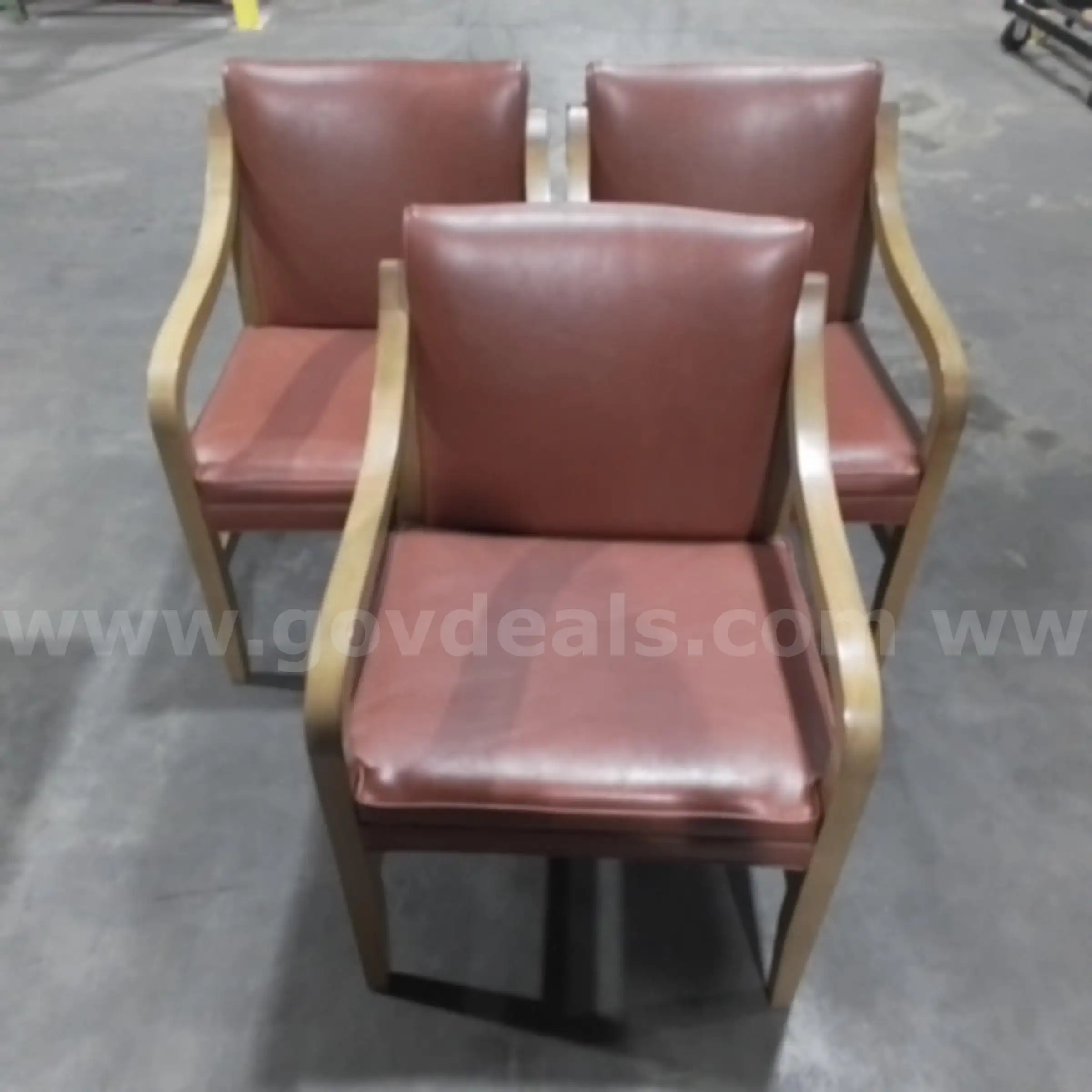 Item:Lot of Standard Chairs with Tan Vinyl Padding and Wooden Legs (3) JM