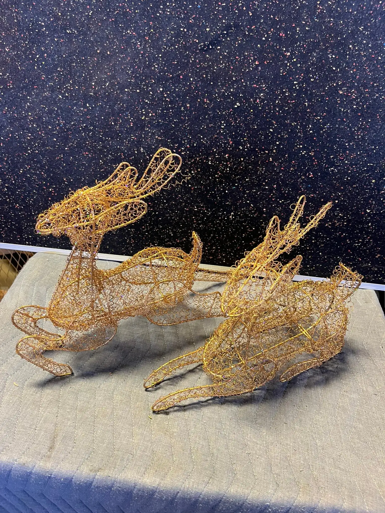 Item:MSU Lot # 9017- Gold Wire Deer Decor Set of 2