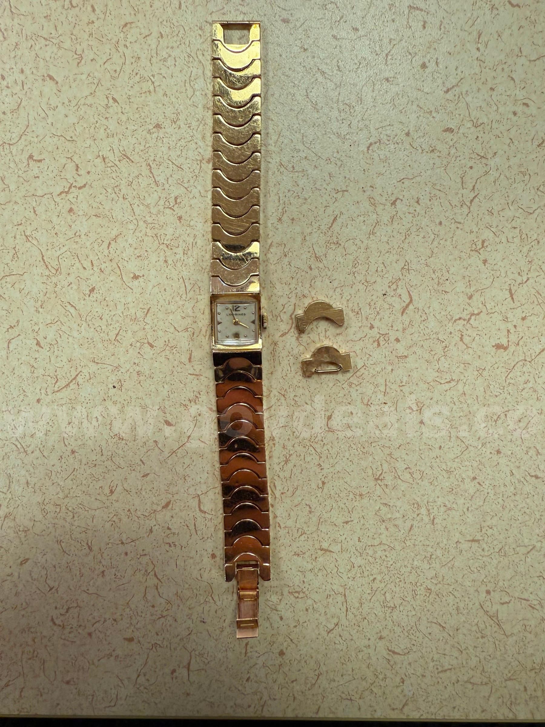 Item:Ladies 14k yellow gold Longines wristwatch with two extra links