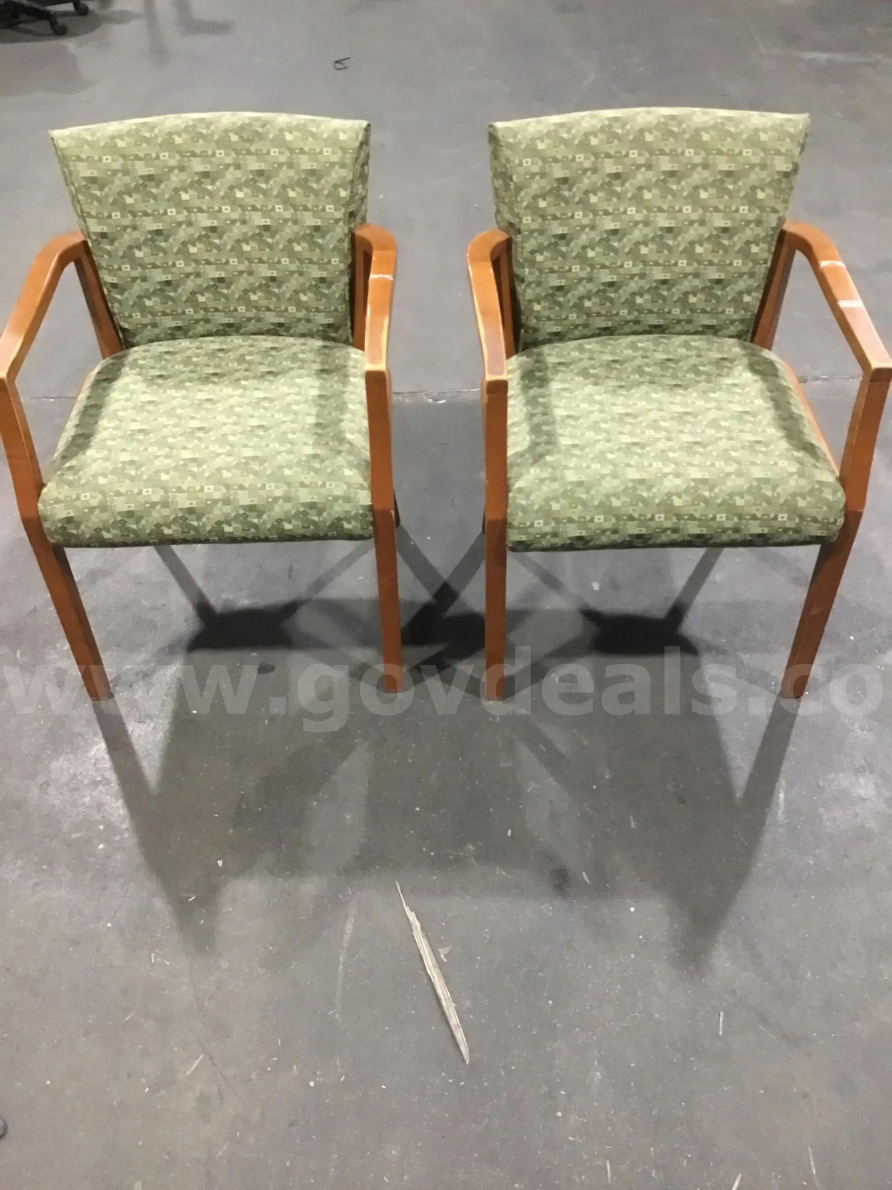 Item:2 multi green standard chairs brown hardwood armrests “DH”