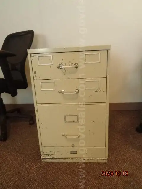 Item:TAN METAL 3 DRAWER FILING CABINET