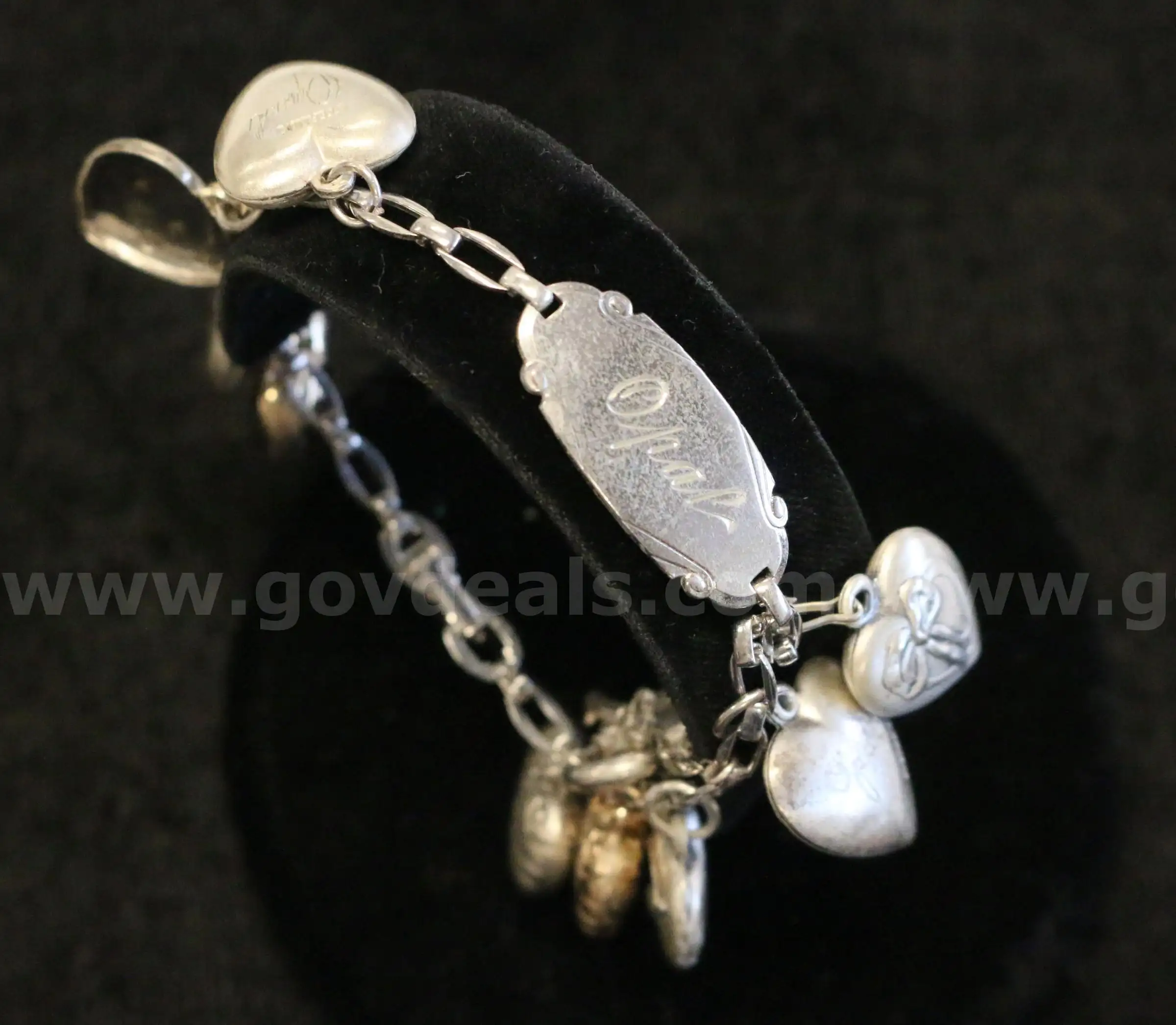 Item:Silver Necklace With Key Pendant & Bracelet With Heart Charms 21.1 Grams