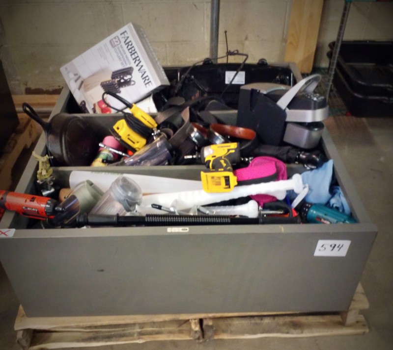 Item:LOT # 594 TSA BOOKCASE OF VARIOUS ITEMS