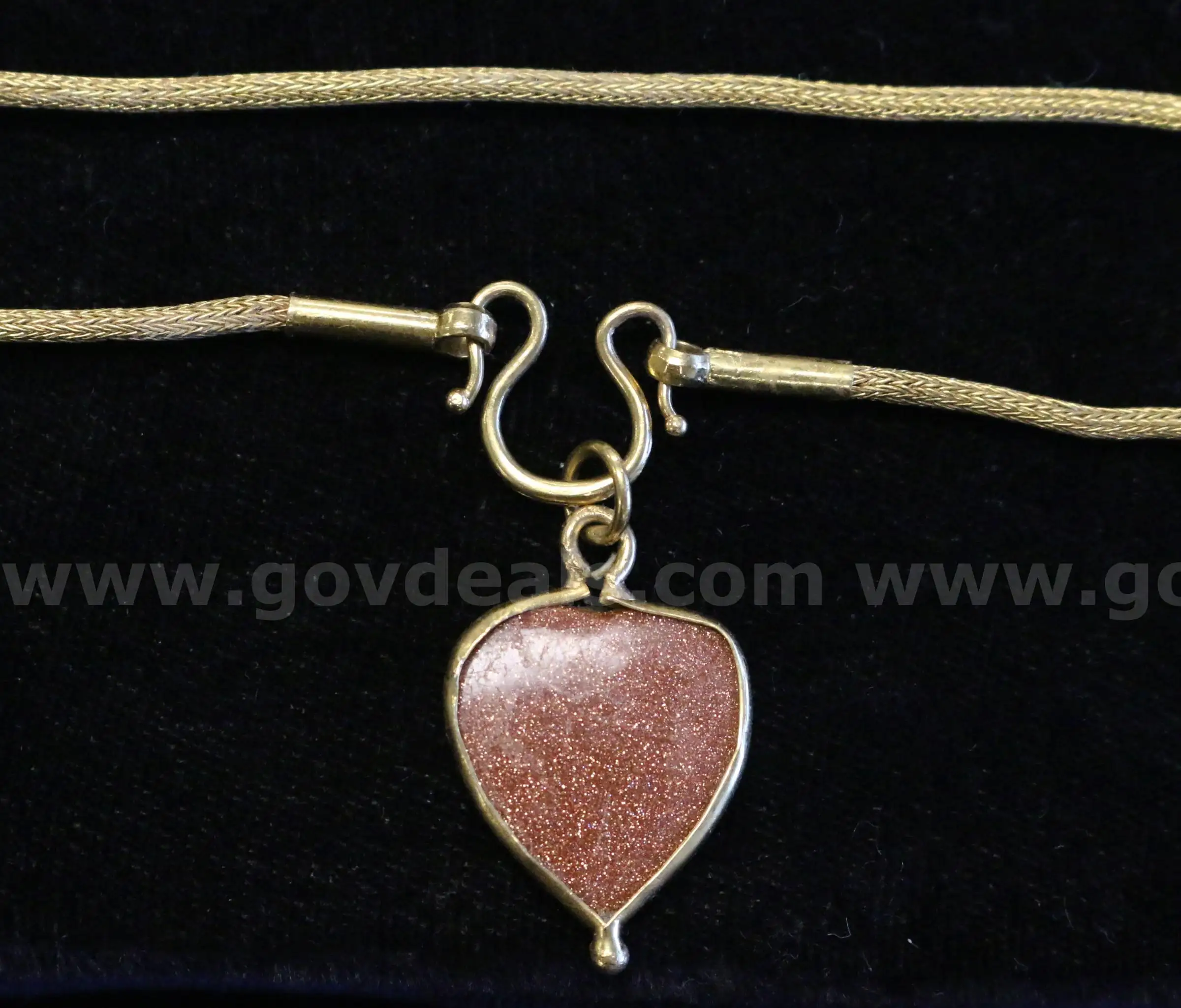 Item:21K Yellow Gold Weave Deign Necklace W Goldstone Pendant 13.4 Grams