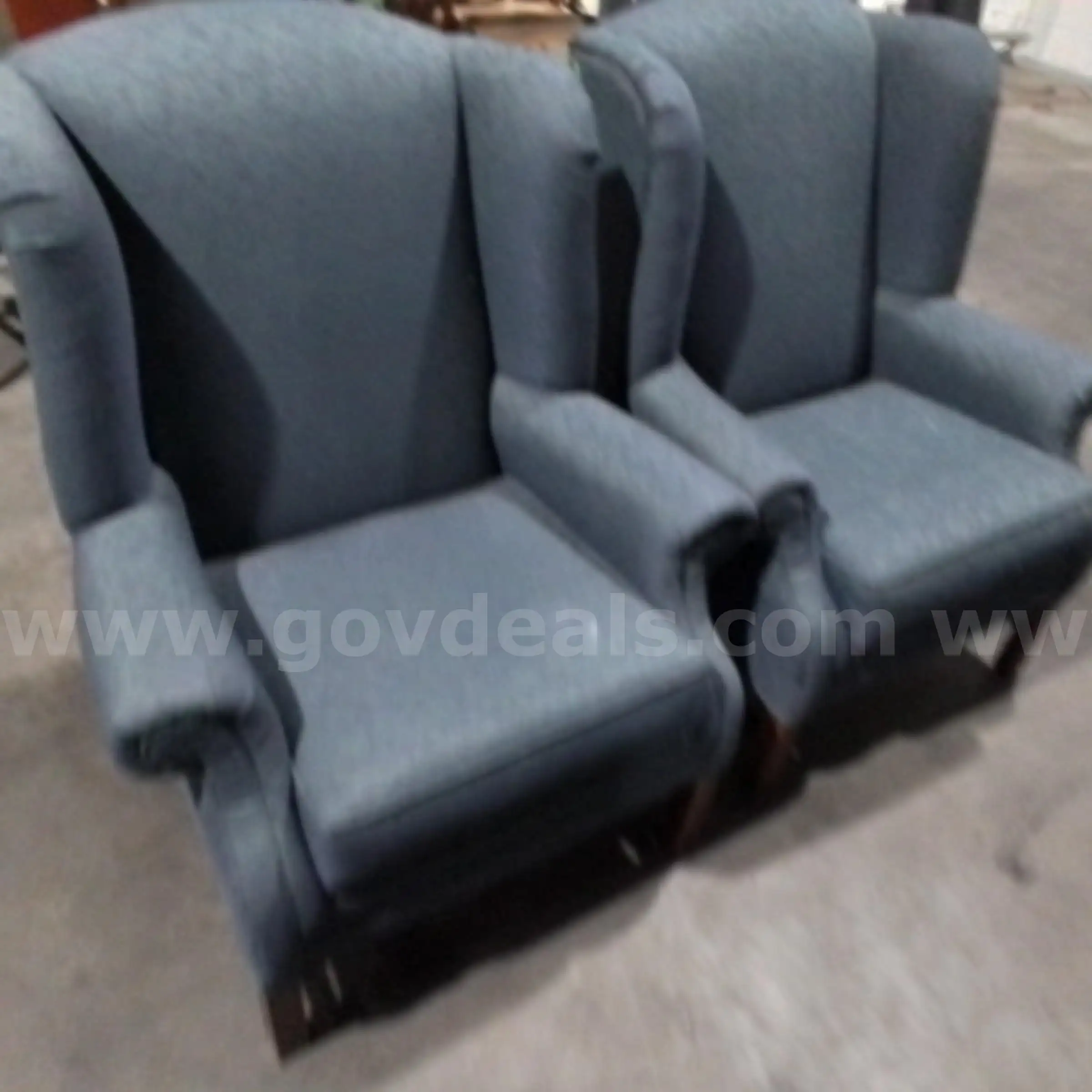 Item:Lot of Standard Chairs color Blue with Designs and Wooden Legs (2) JM