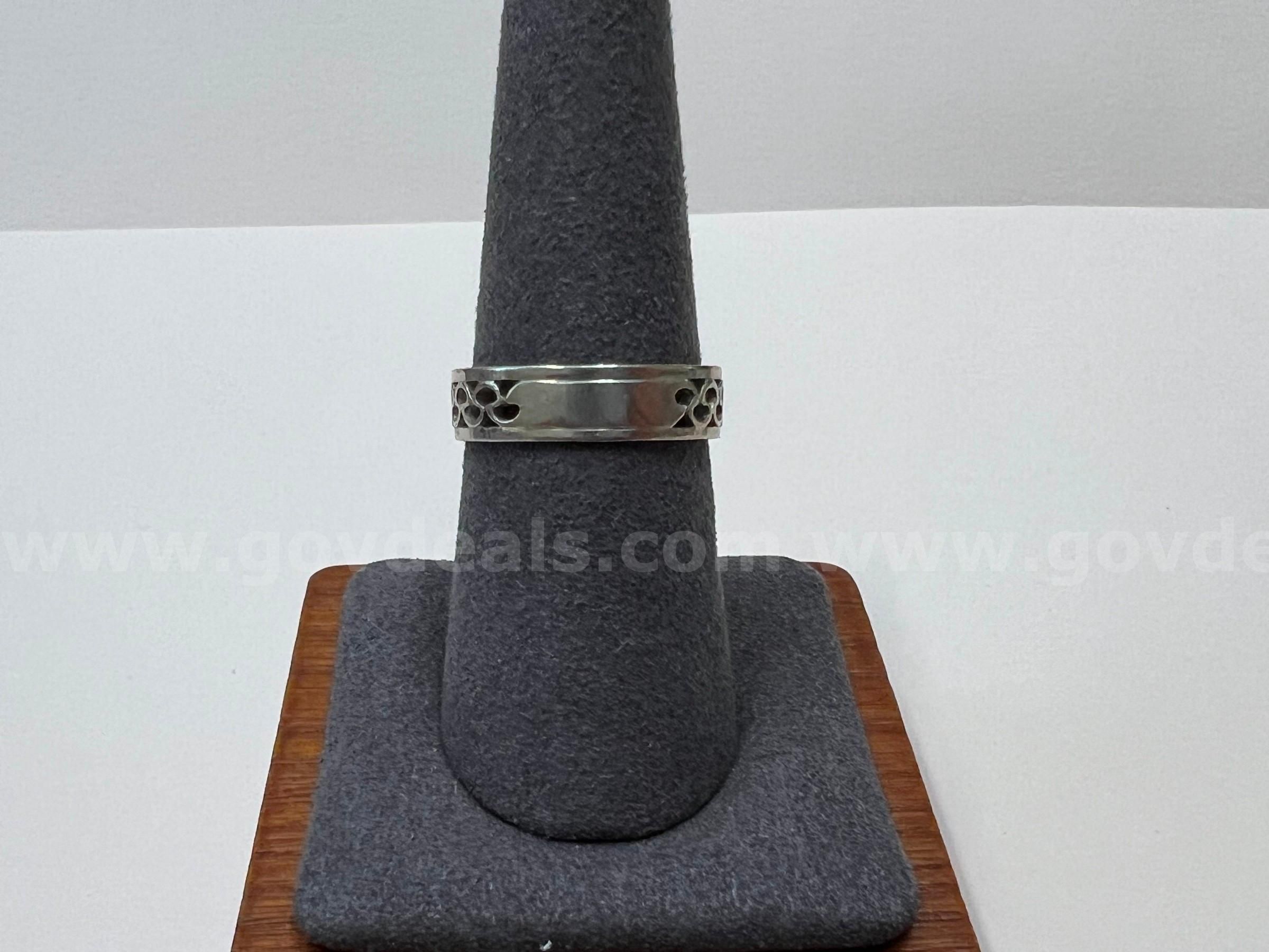 Item:Silver Color Ring Band with intricate Cutouts - Marked 14k