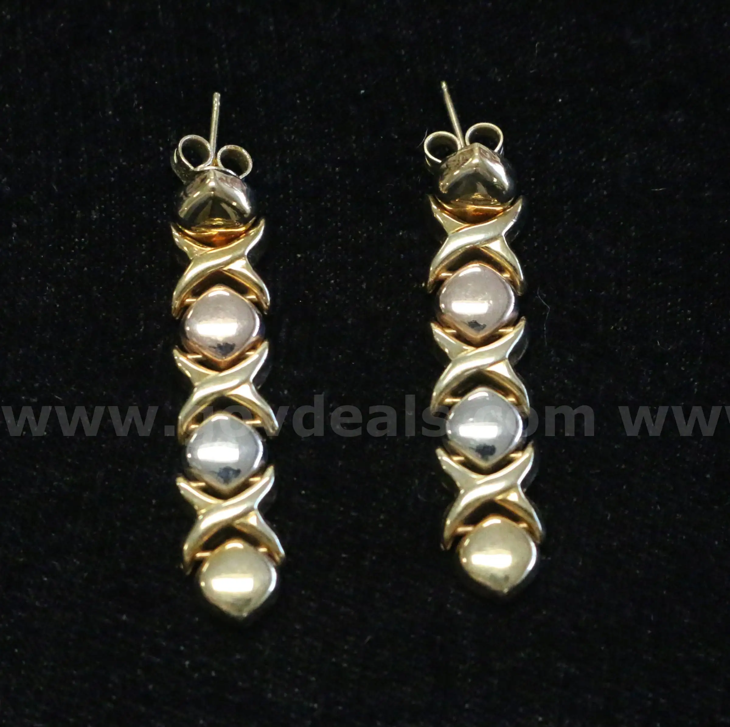 Item:14K Tri-Color Dangle Earrings X O Design 5.7 Grams