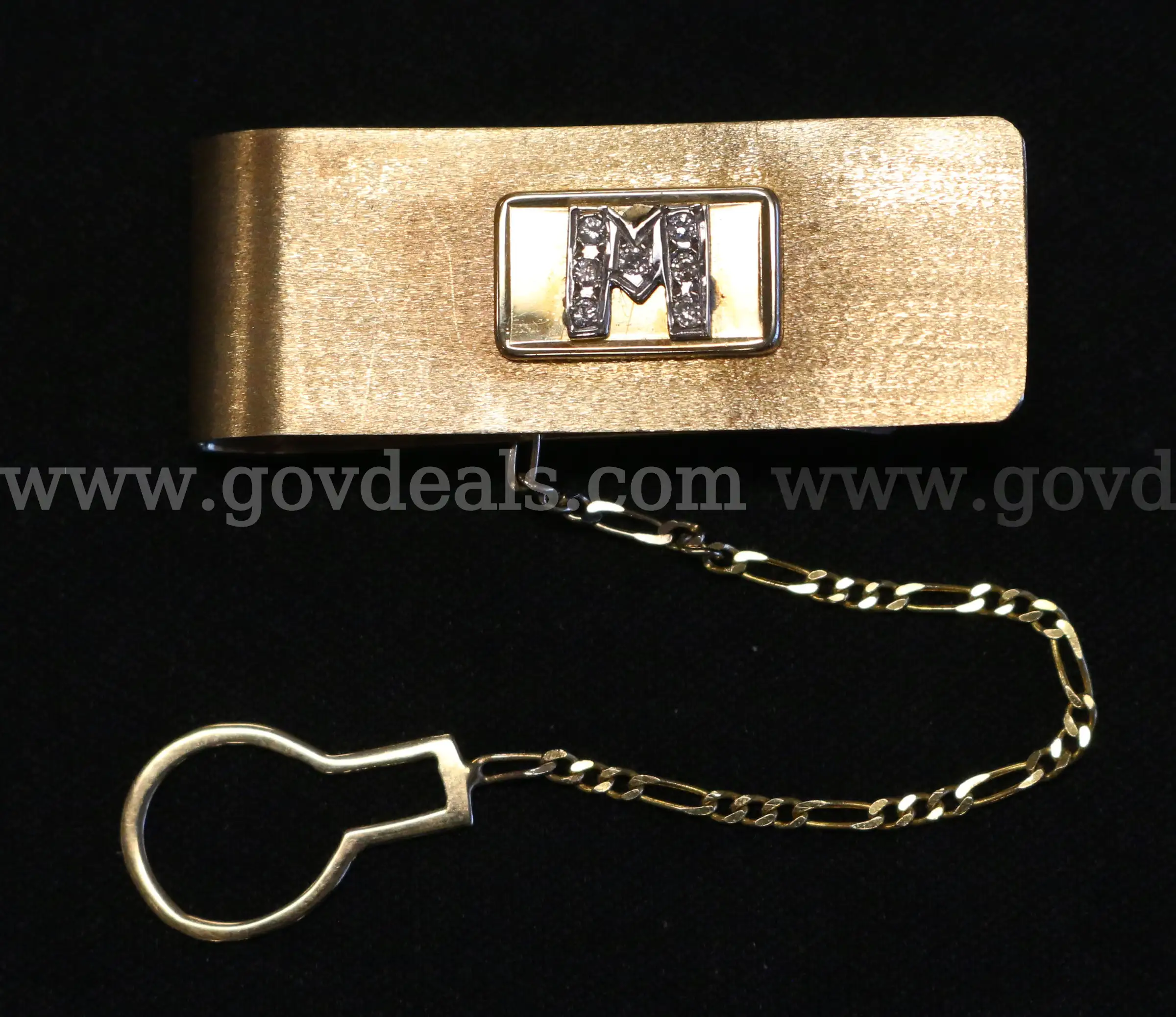 Item:14K Yellow Gold Monogram Design Money Clip With Diamonds 11.5 Grams