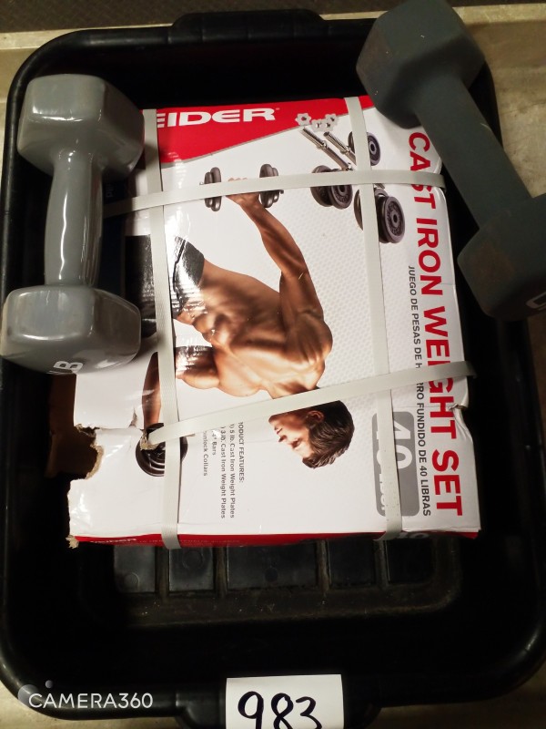 Description:TSADescription: VARIOUS WEIGHTS - CAST IRON SET & DUMBBELLS ?CONTENTS OF 1 PLASTIC TUB 14W X 19L X 4.5''H AS PICTUREDPLASTIC TUBS ARE STATE PROPERTY AND ARE NOT PART OF AUCTIONSWINNING BIDDER IS RESPONSIBLE FOR BRINGING CONTAINER TO PUT ITEMS INNOTICE WAR