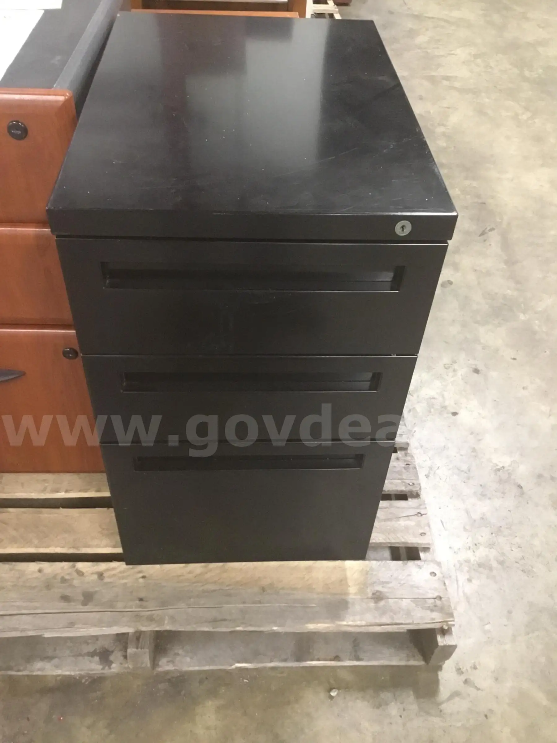 Item:21 1 2 (LENGTH) x 15 (WIDTH) x 25 (HEIGHT) three drawer metal filing cabinet (NO KEY LOCKS) “DH”