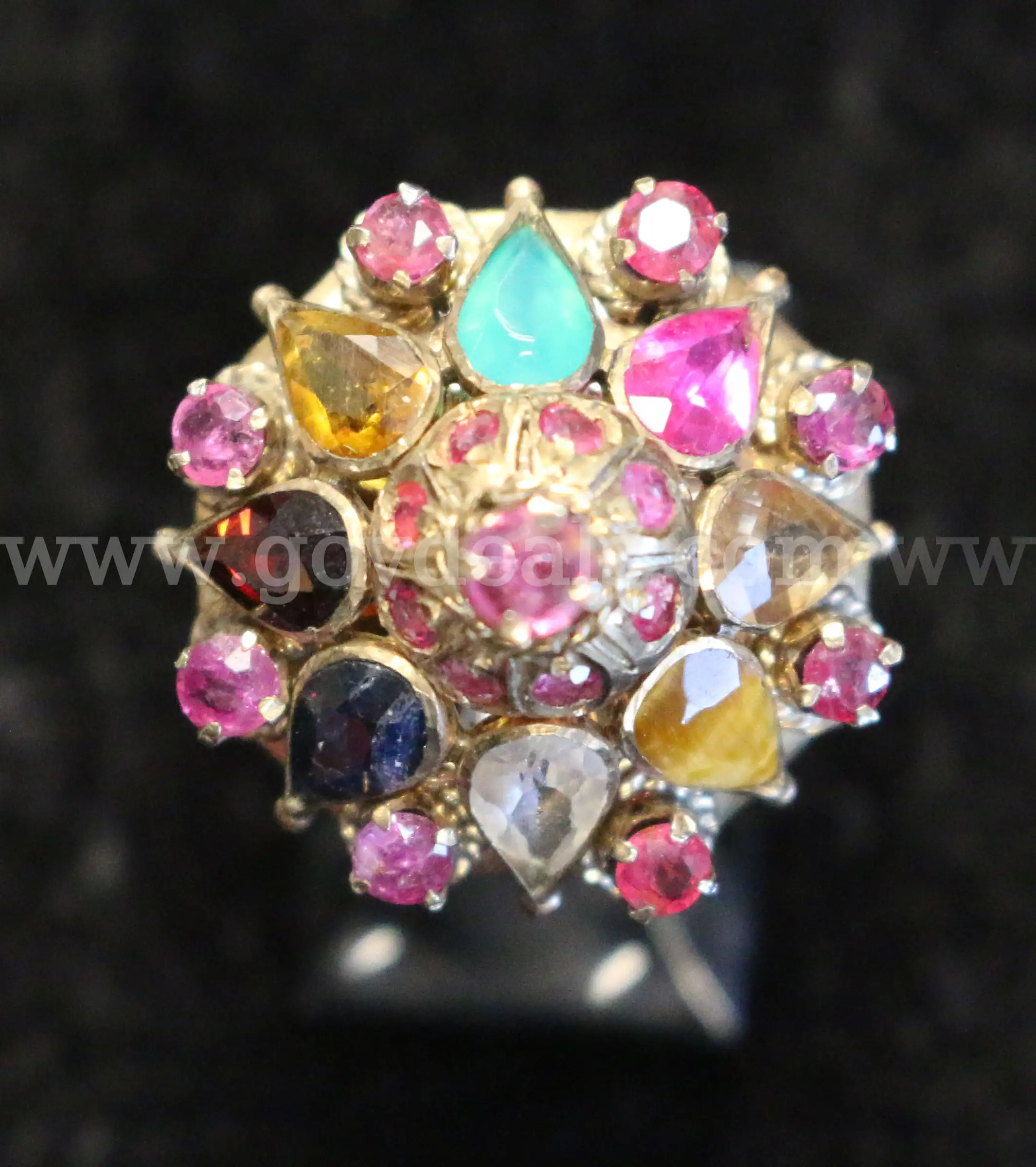 Item:9K Yellow Gold Ring With Multi Colored Stones 5.4 Grams