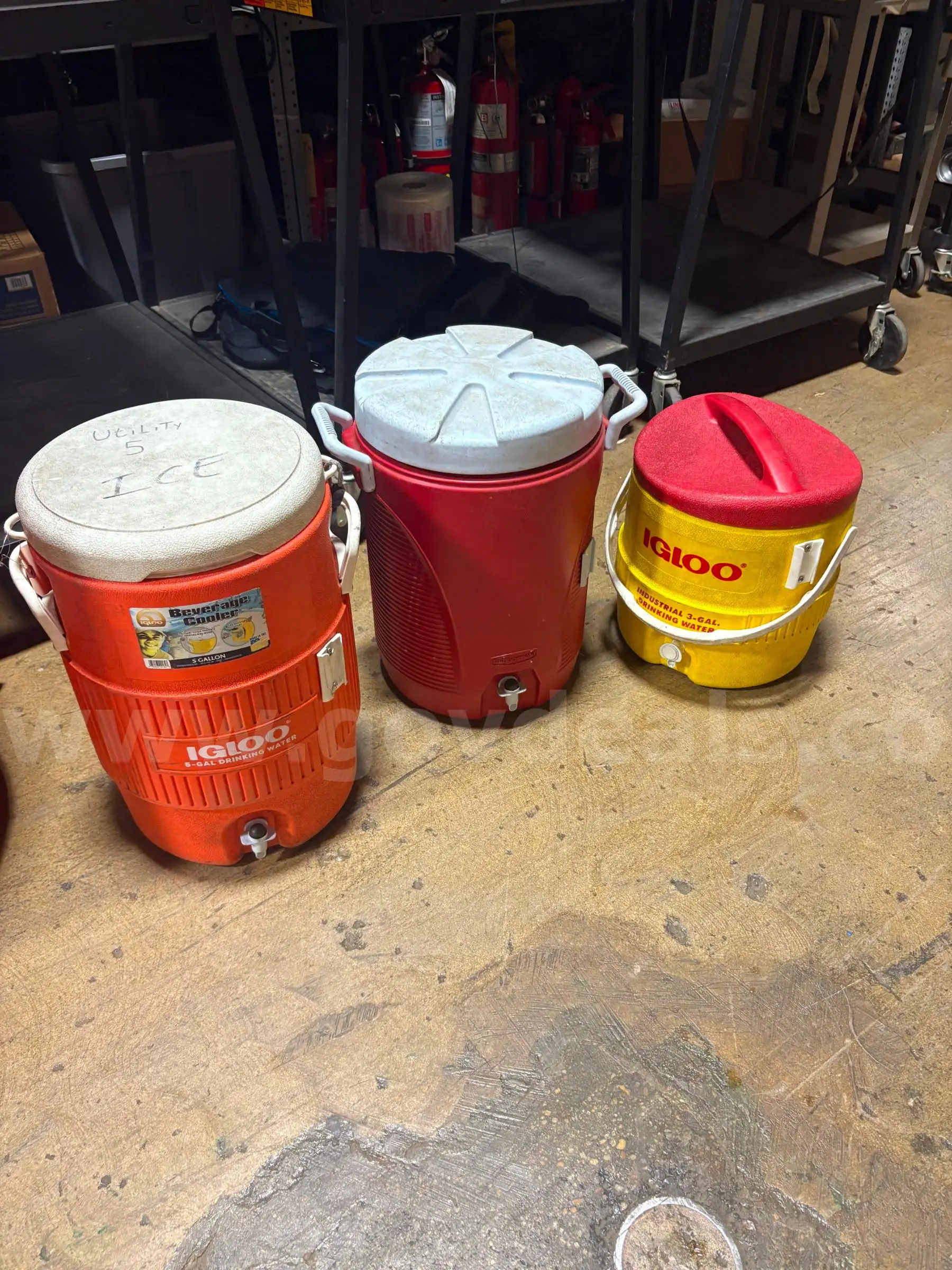 Item:Three igloo drinking coolers
