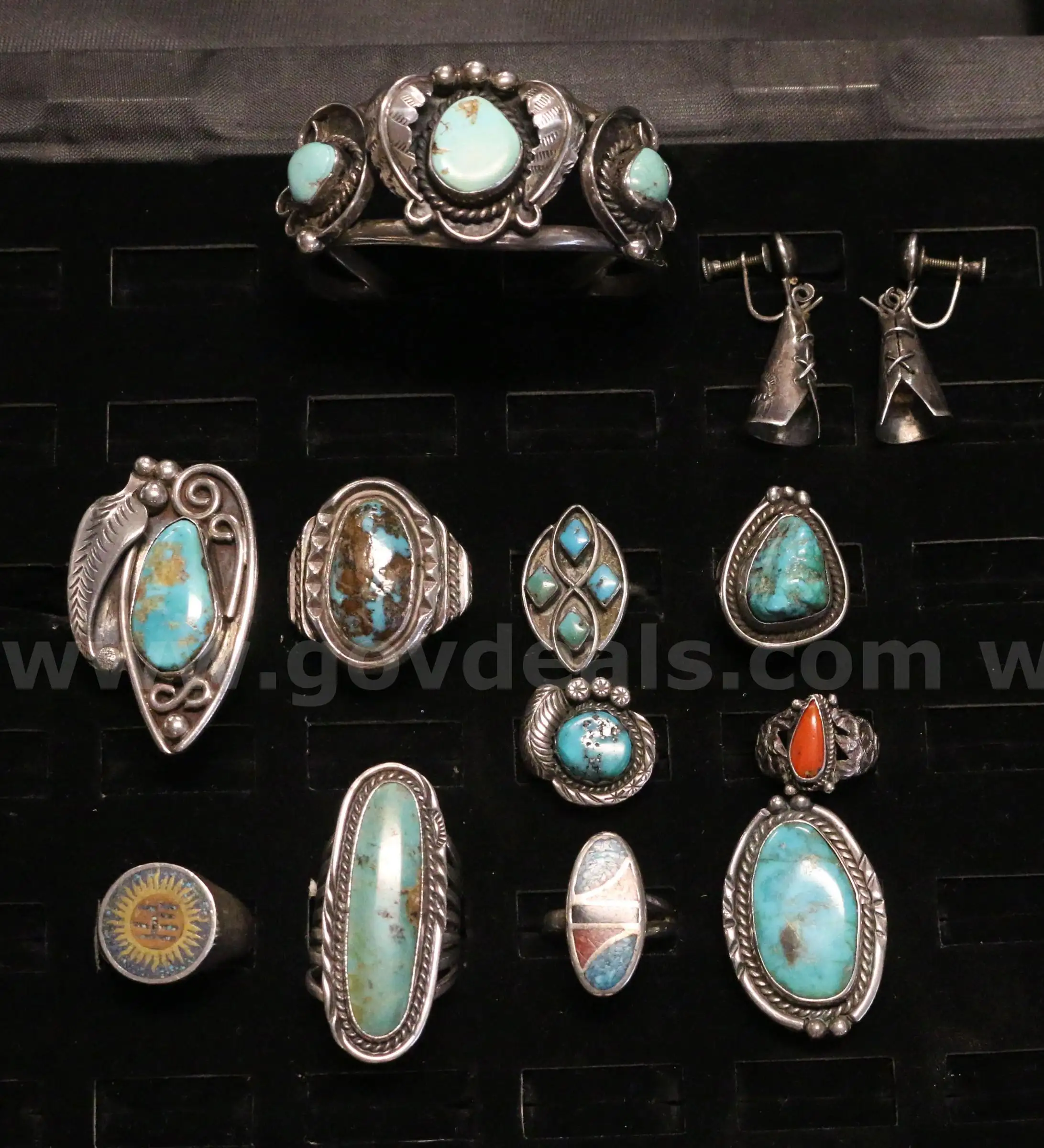 Item:11 Pieces Silver Native American Design Jewelry W Turquoise Stones 142.0 Grams
