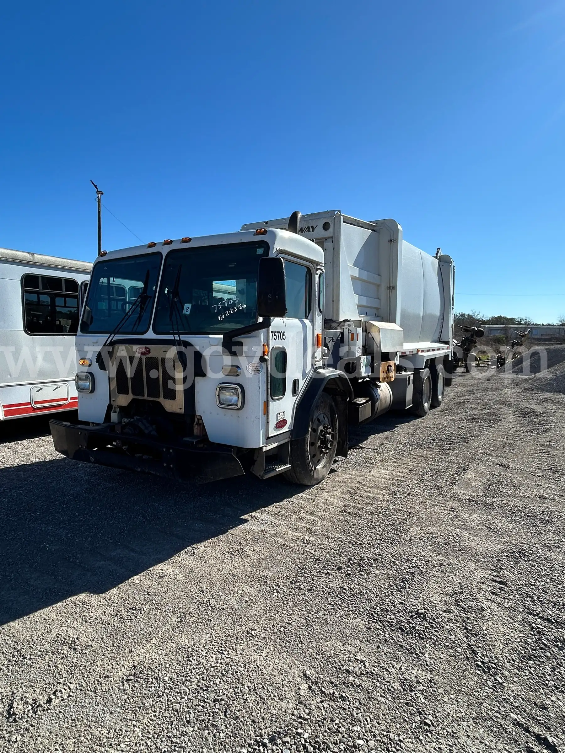 Item:WHITE 2019 SIDE LOADER GARBAGE MOUNTED TO Peterbilt 520 8.9L