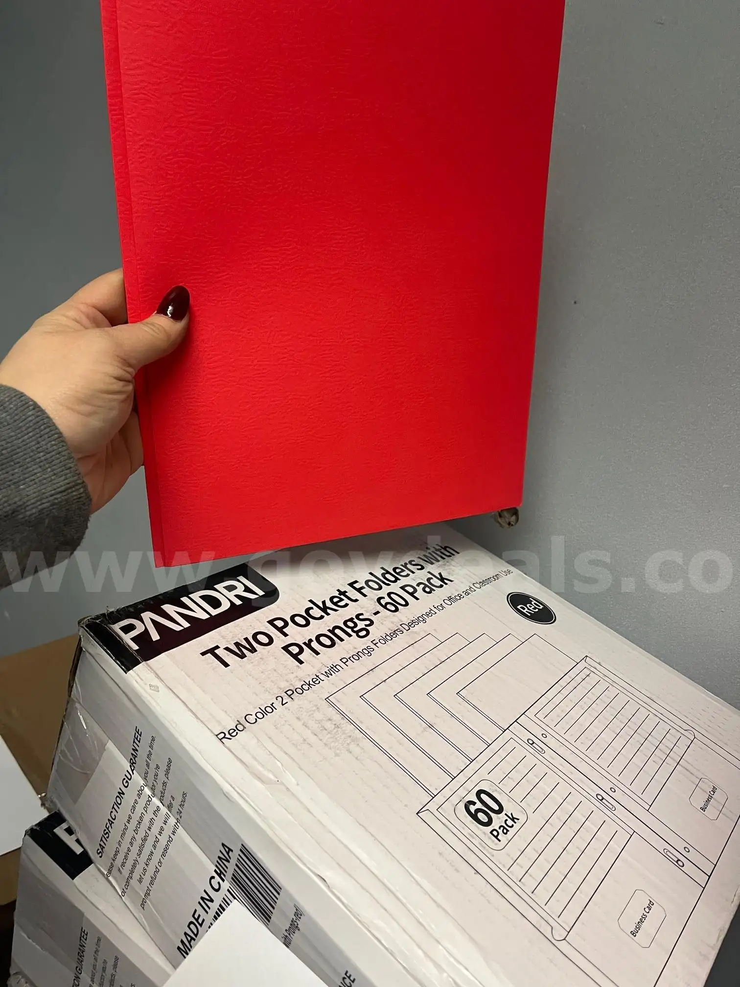 Item:Bulk Lot of PANDRI Red Two-Pocket Folders with 3-Prong Fasteners — Letter Size 60 Folders per Case.